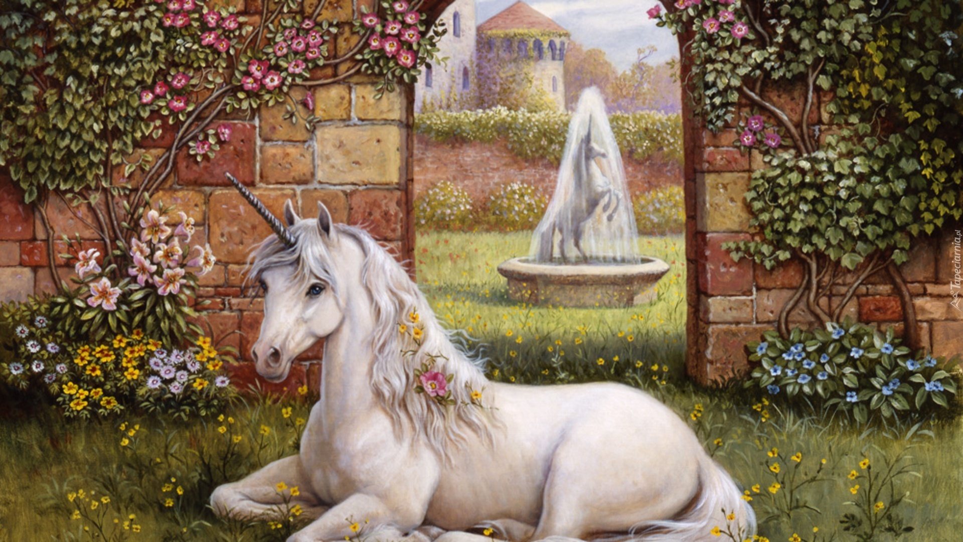 Edytor tapety: Jednorożec, Przejście, Fontanna