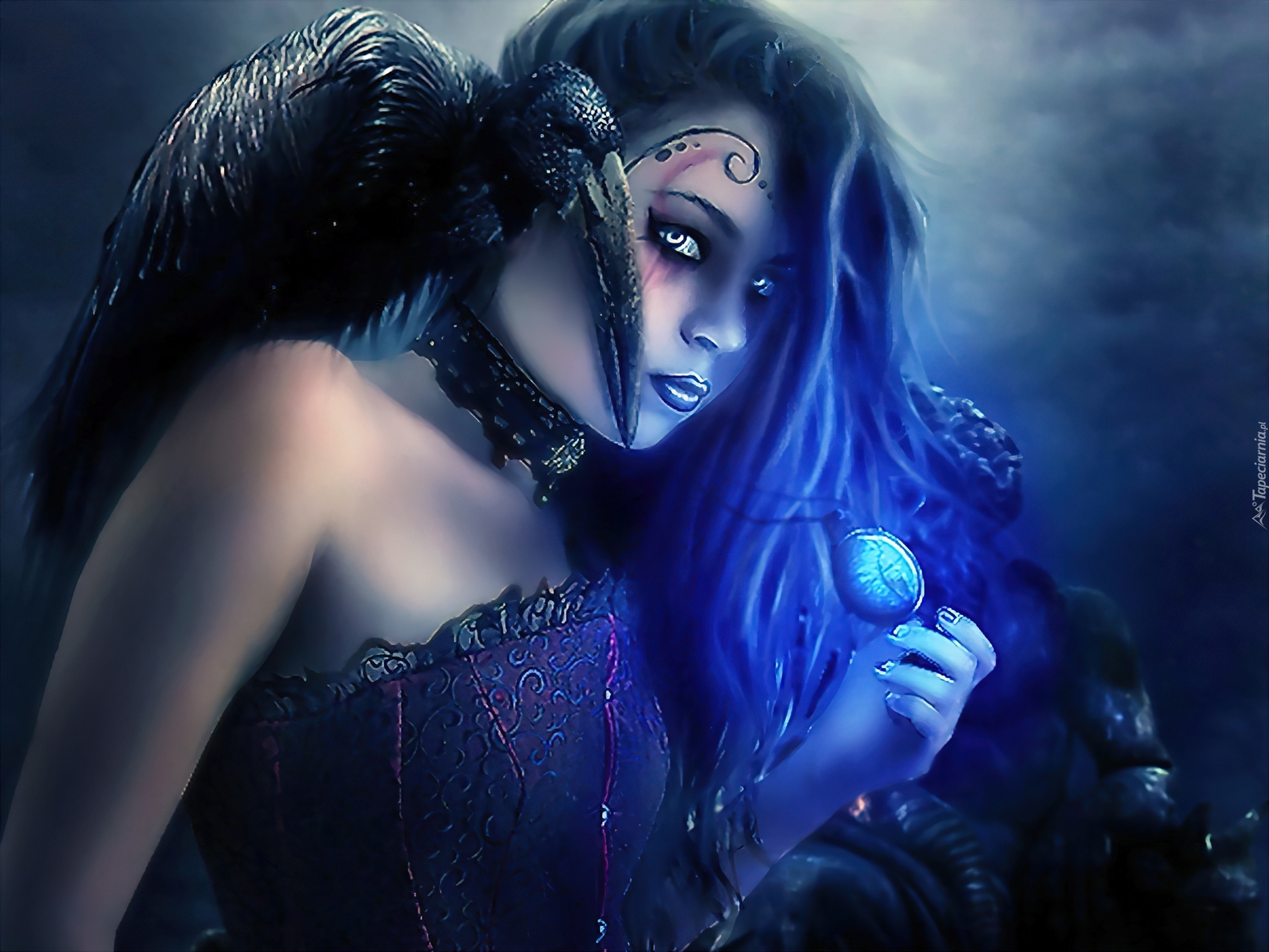 Edytor tapety: Dziewczyna, Kruk, Zegarek