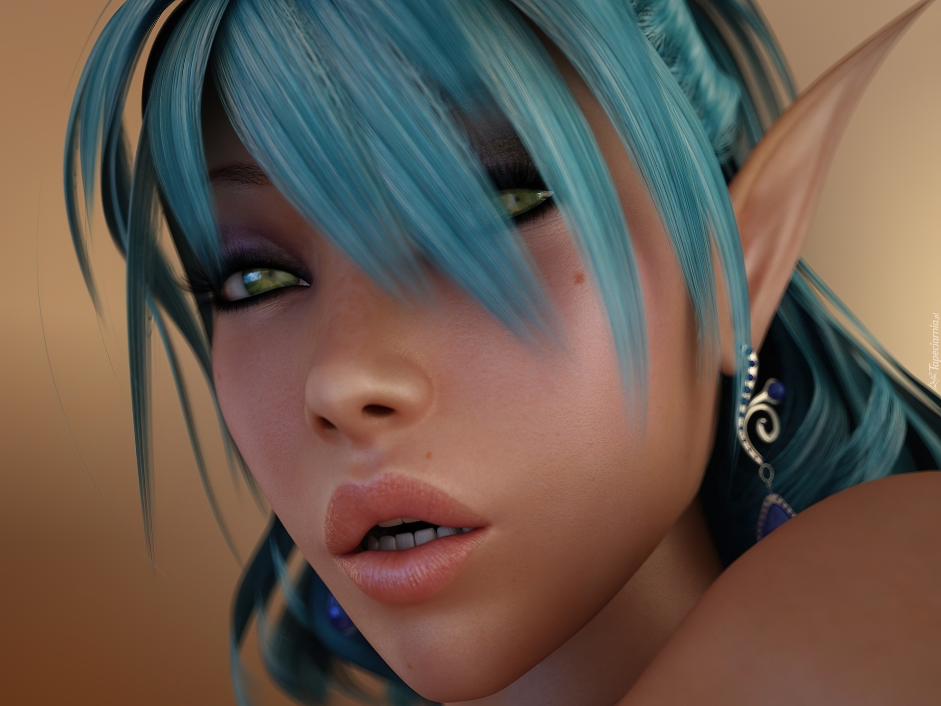 Edytor tapety: Elf, Kolczyk, Niebieskie, Włosy