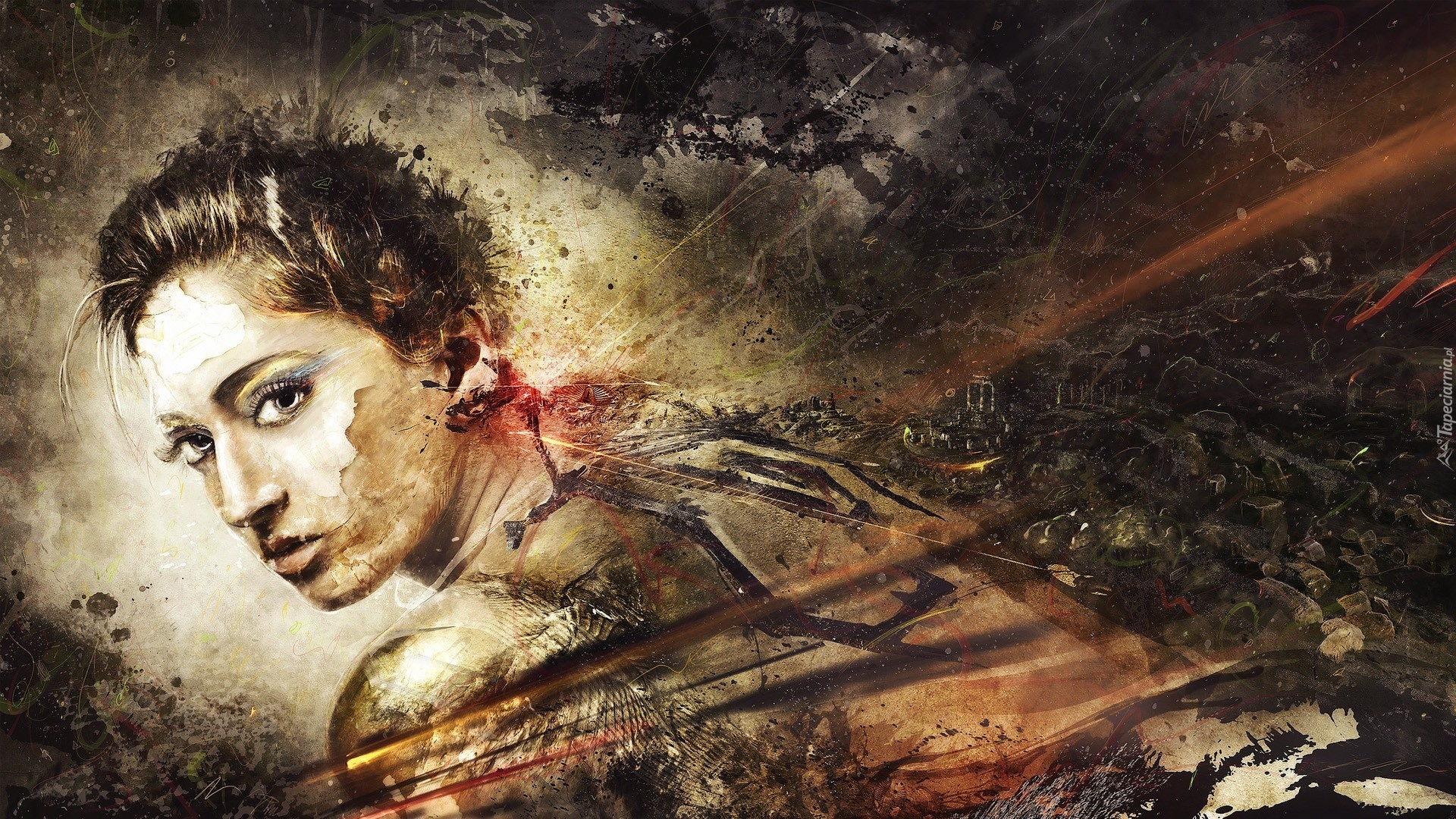 Edytor tapety: Zraniona, Kobieta, Grafika