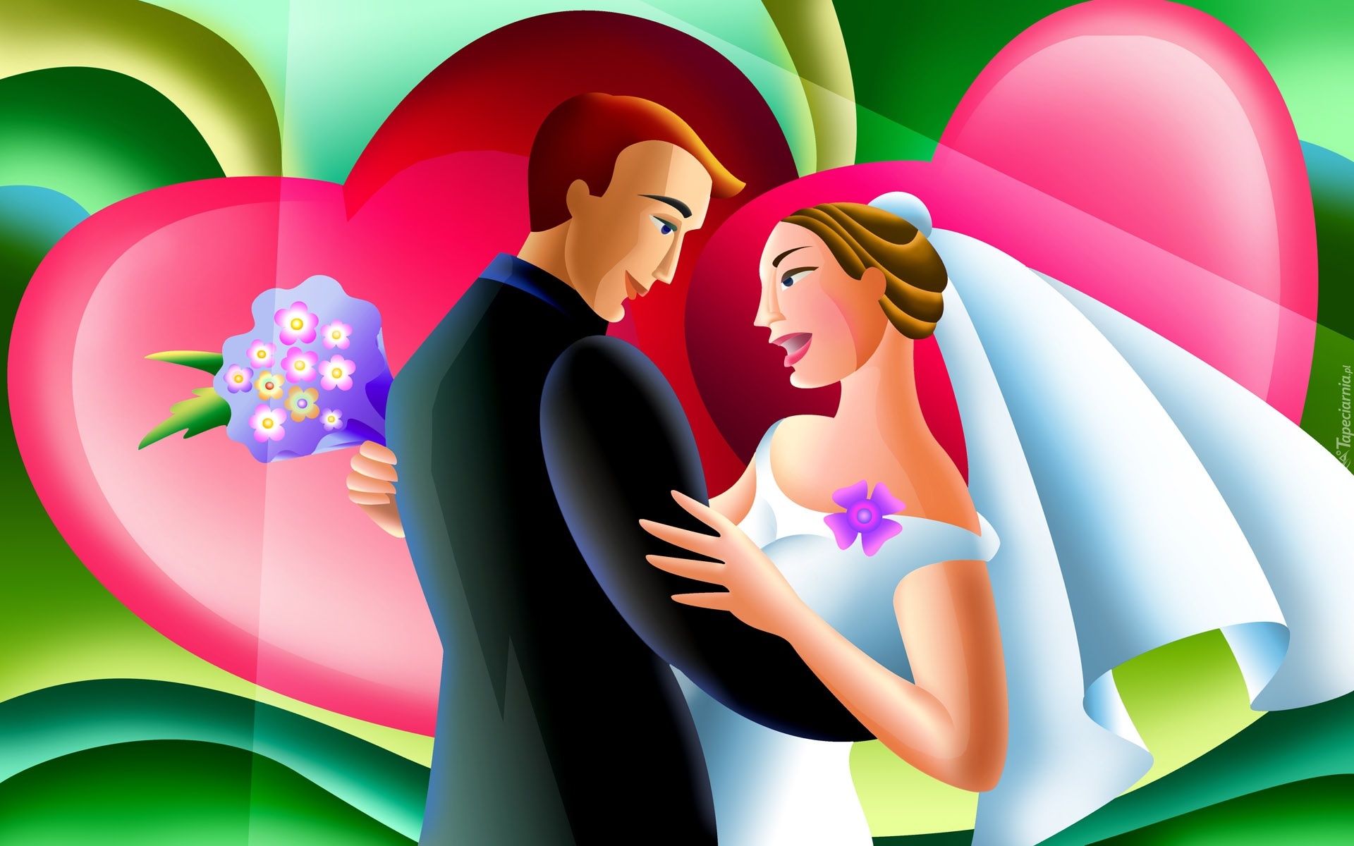 Edytor tapety: Para, Młodych, Ślub, Radość, Grafika