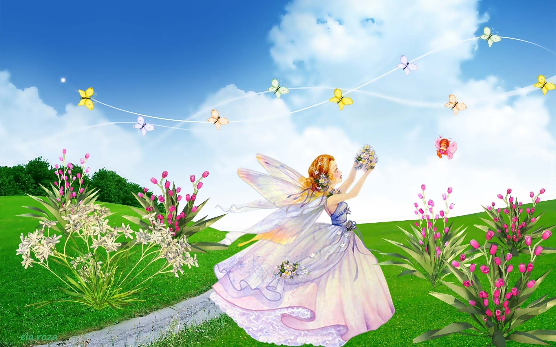 Edytor tapety: Kraina, Motyli, Elf