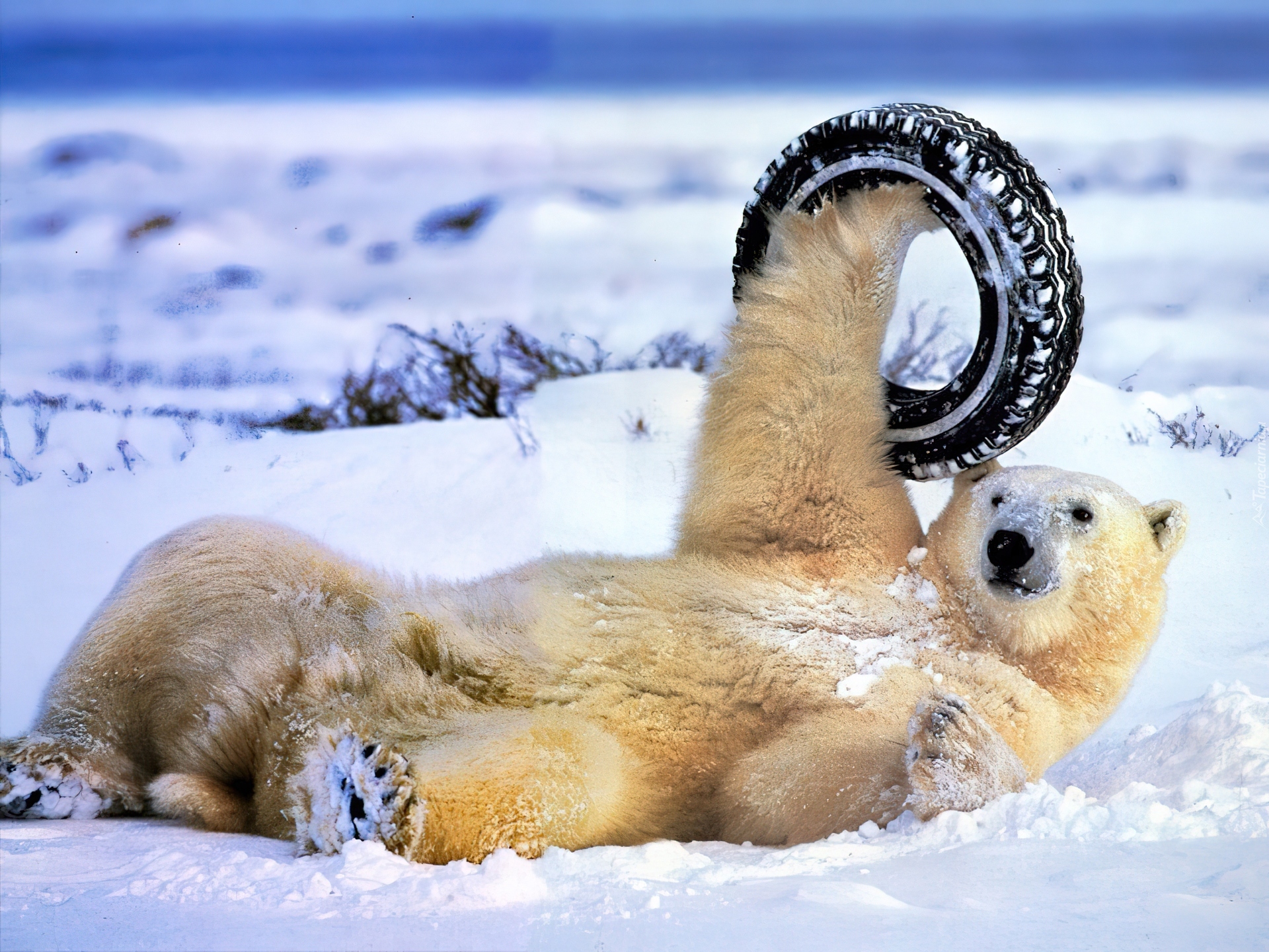 Edytor tapety: Niedźwiedź, Polarny, Opona, Zabawa, Śnieg