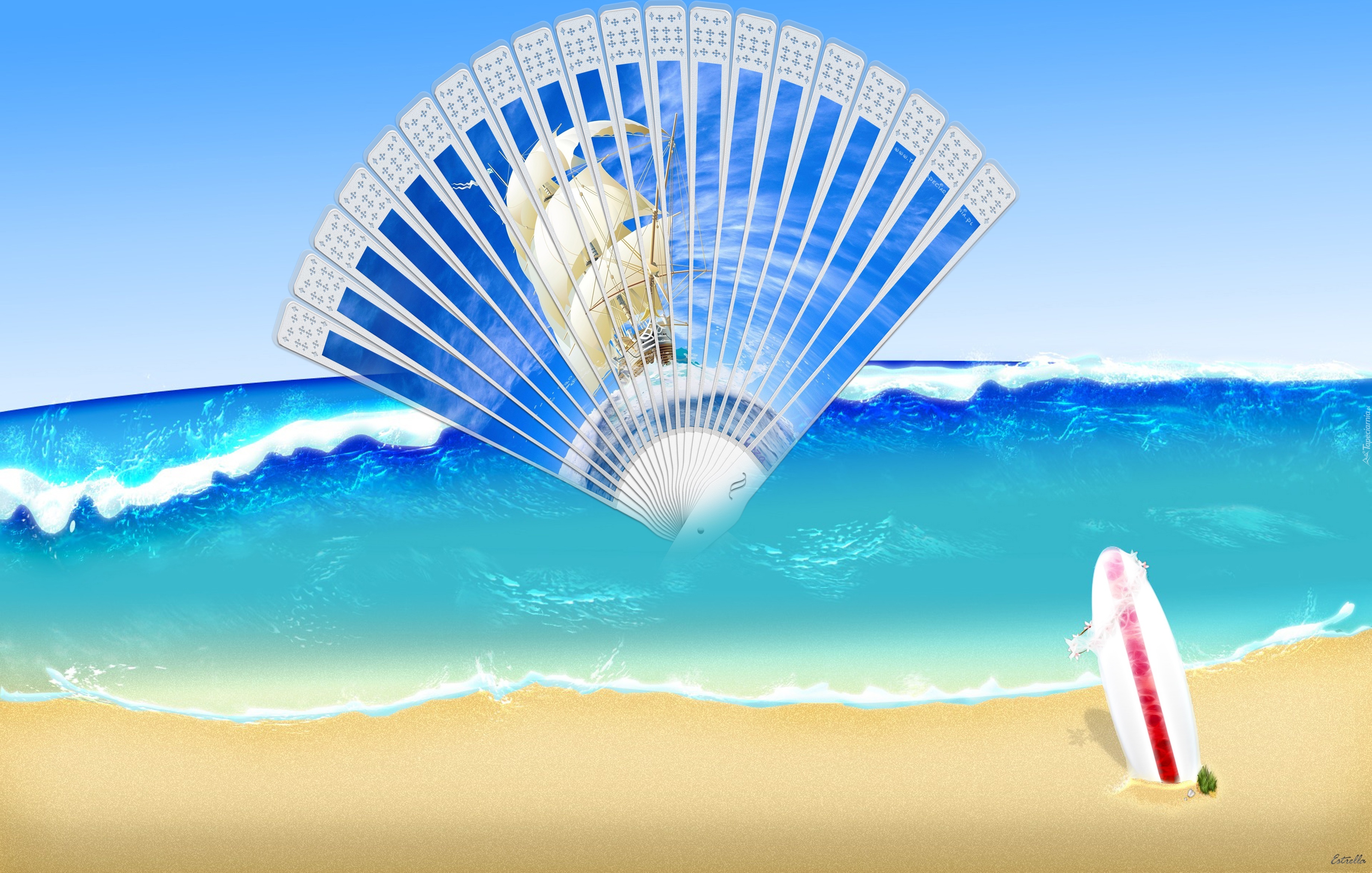 Edytor tapety: Wachlarz, Ocean, Deska
