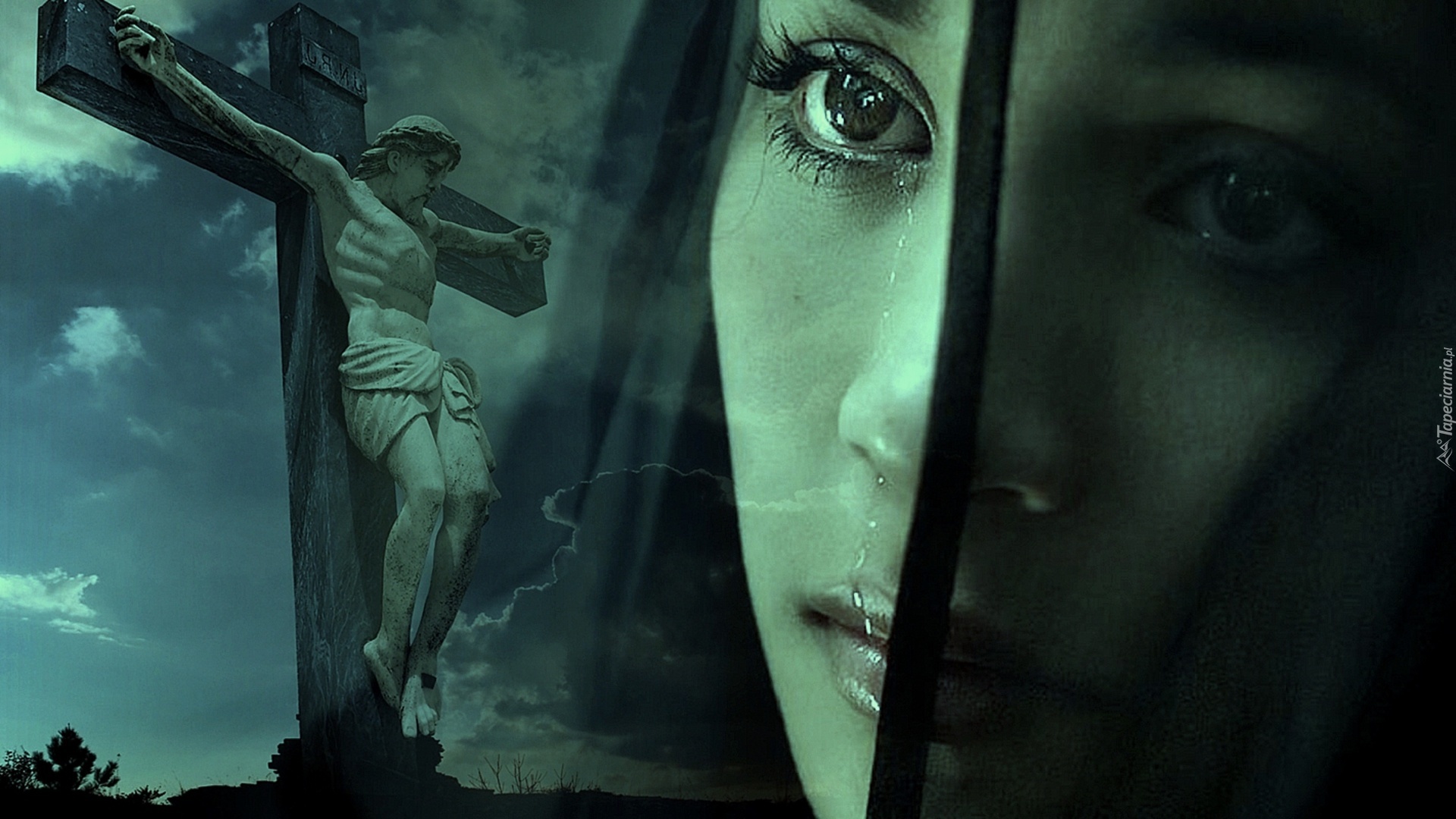 Edytor tapety: Płacząca, Maryja, Ukrzyżowany, Jezus