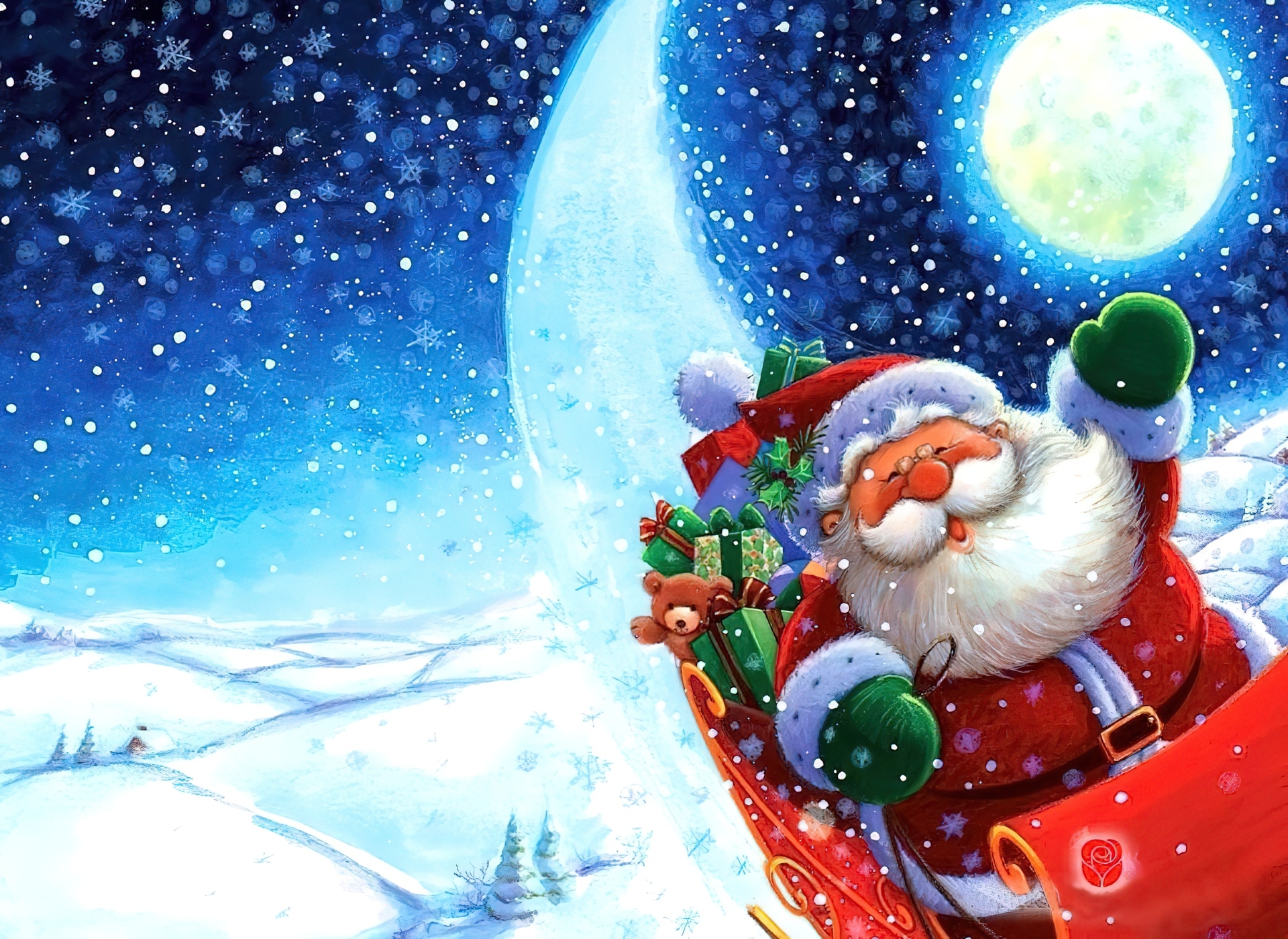 Edytor tapety: Mikołaj, Sanie, Śnieg