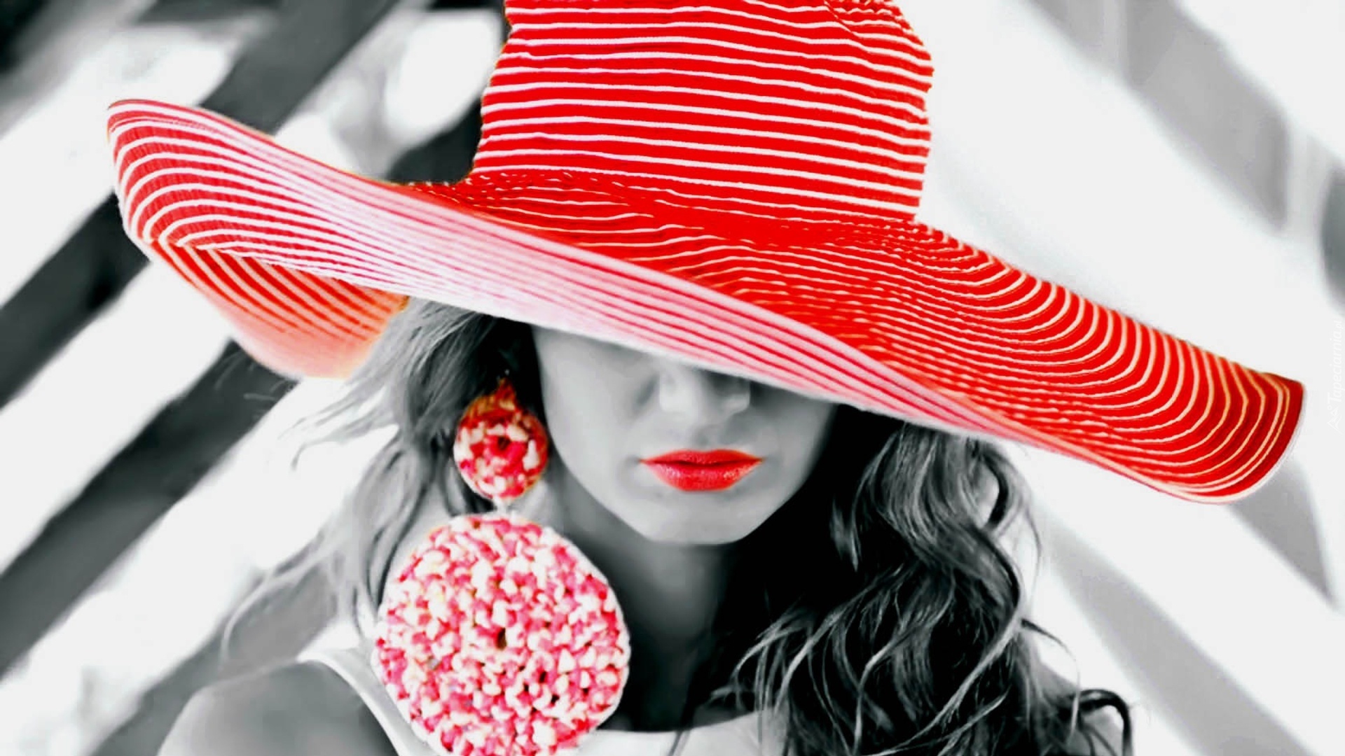 Edytor tapety: Kobieta, Klips, Czerwony, Kapelusz