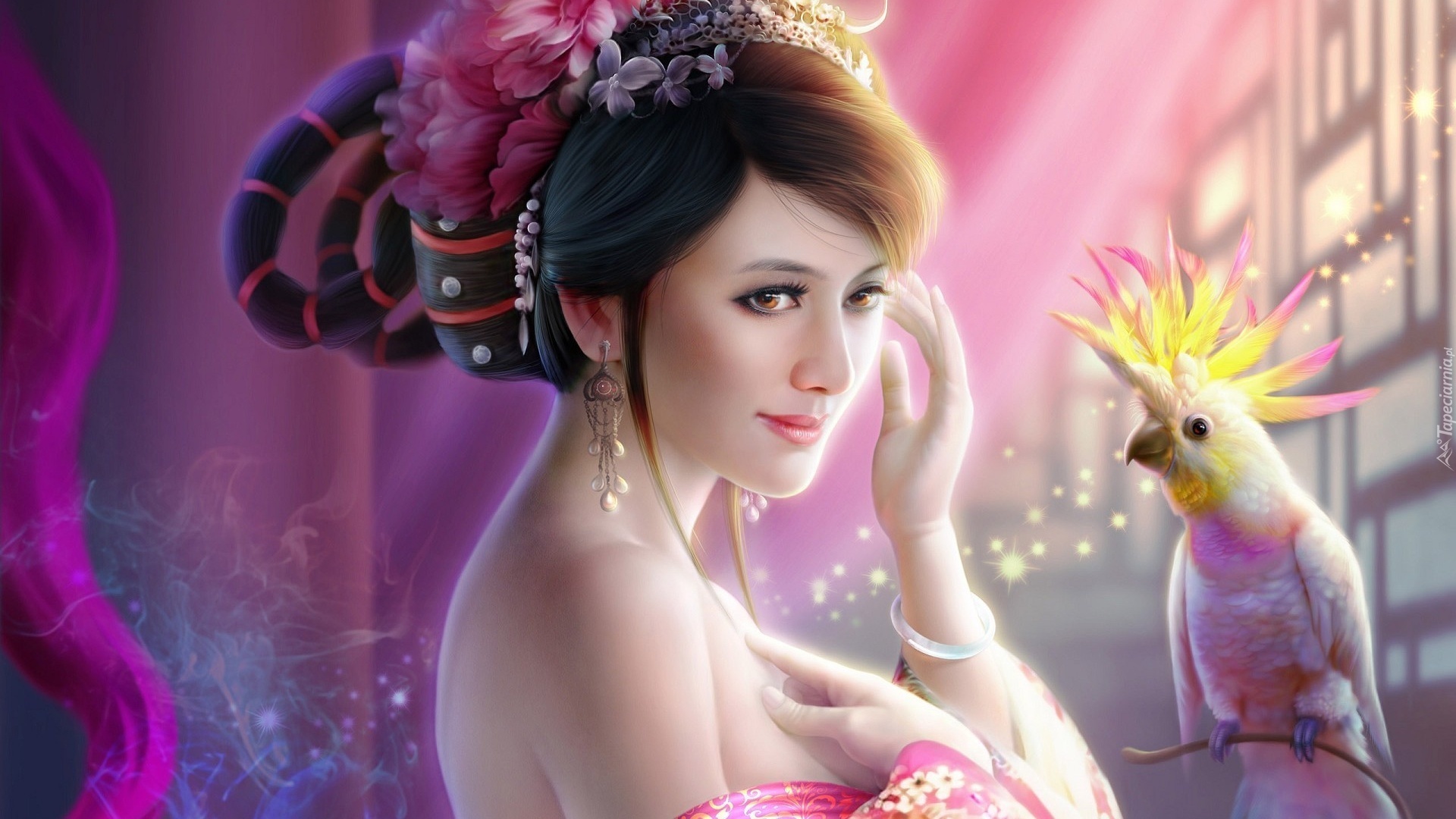Edytor tapety: Kobieta, Pastelowa, Papuga