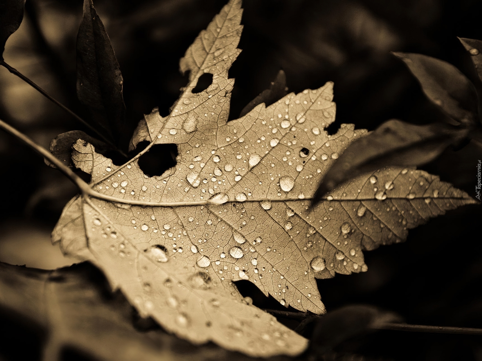 Edytor tapety: Liść, Krople, Wody