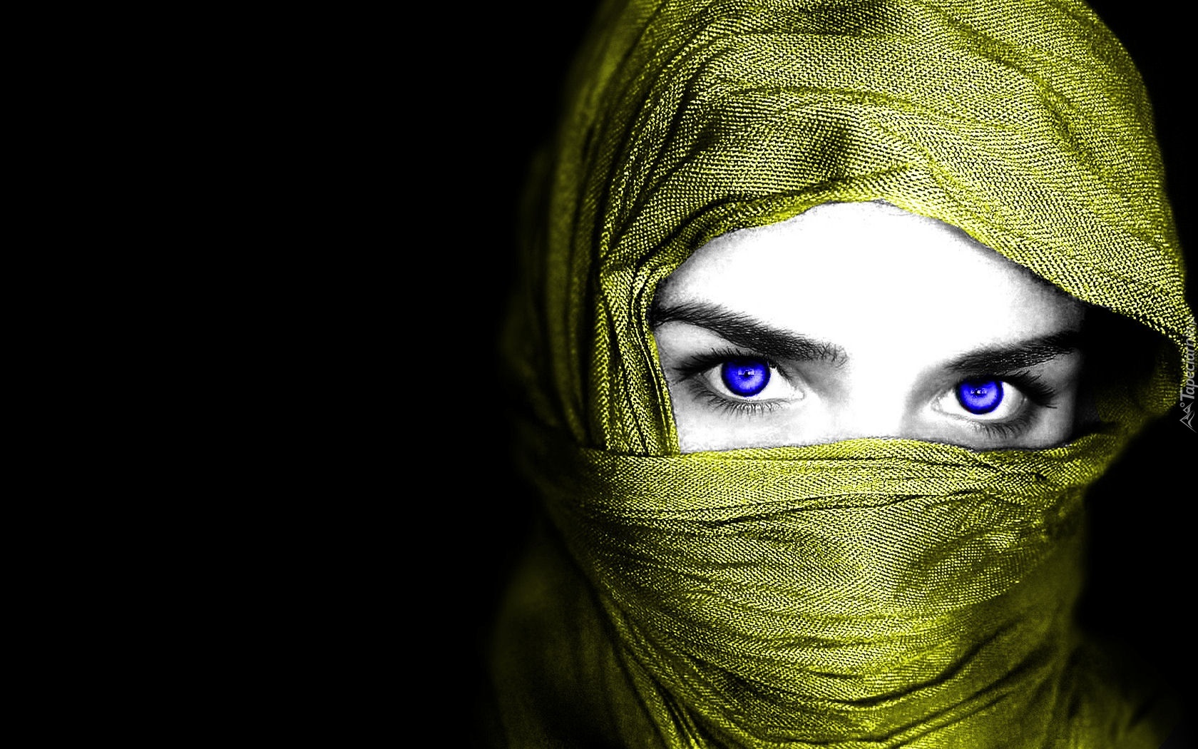 Edytor tapety: Kobieta, Niebieskie, Oczy, Chusta