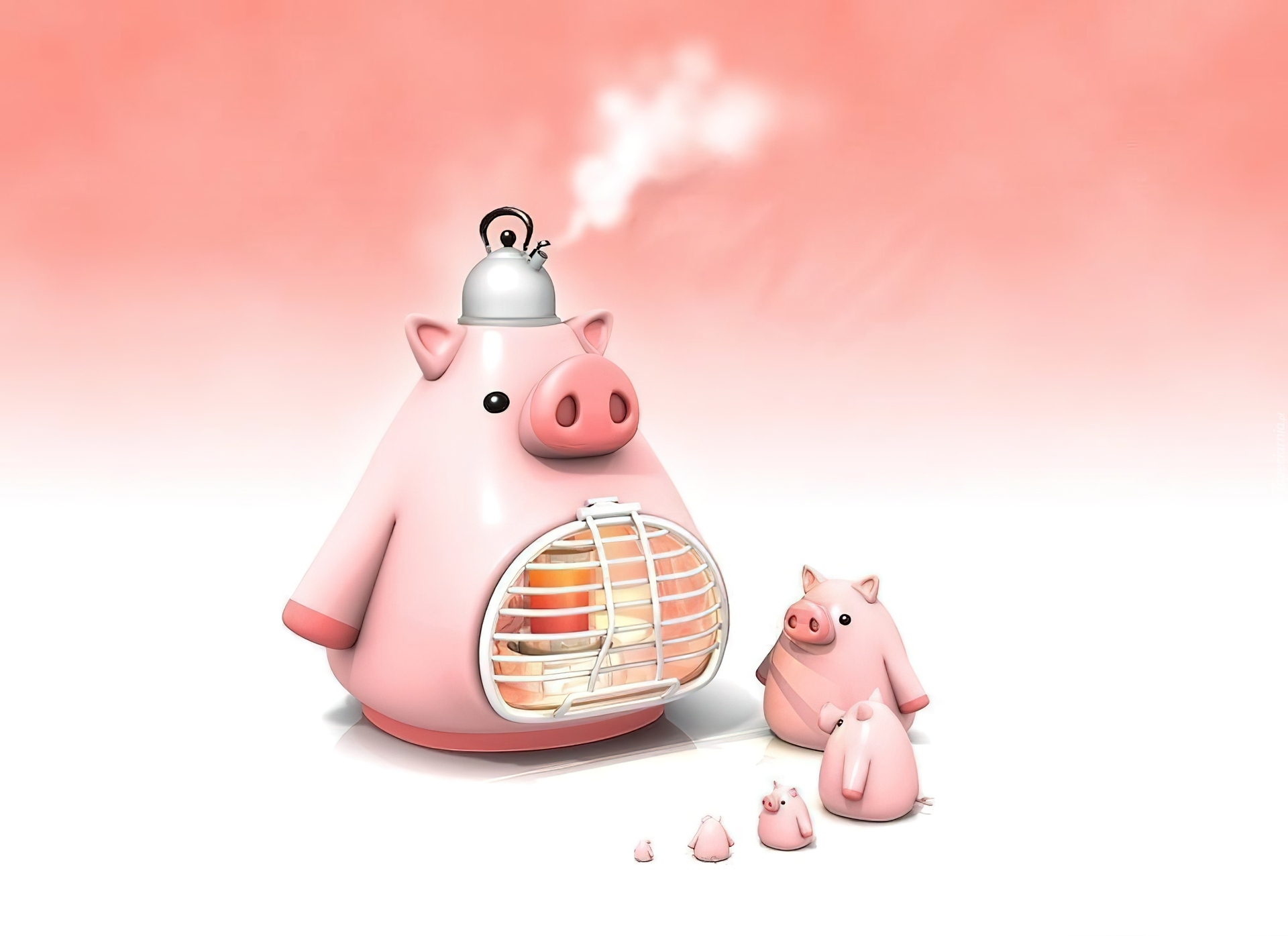 Edytor tapety: Różowe, Świnki, Podgrzewacz, Czajniczek