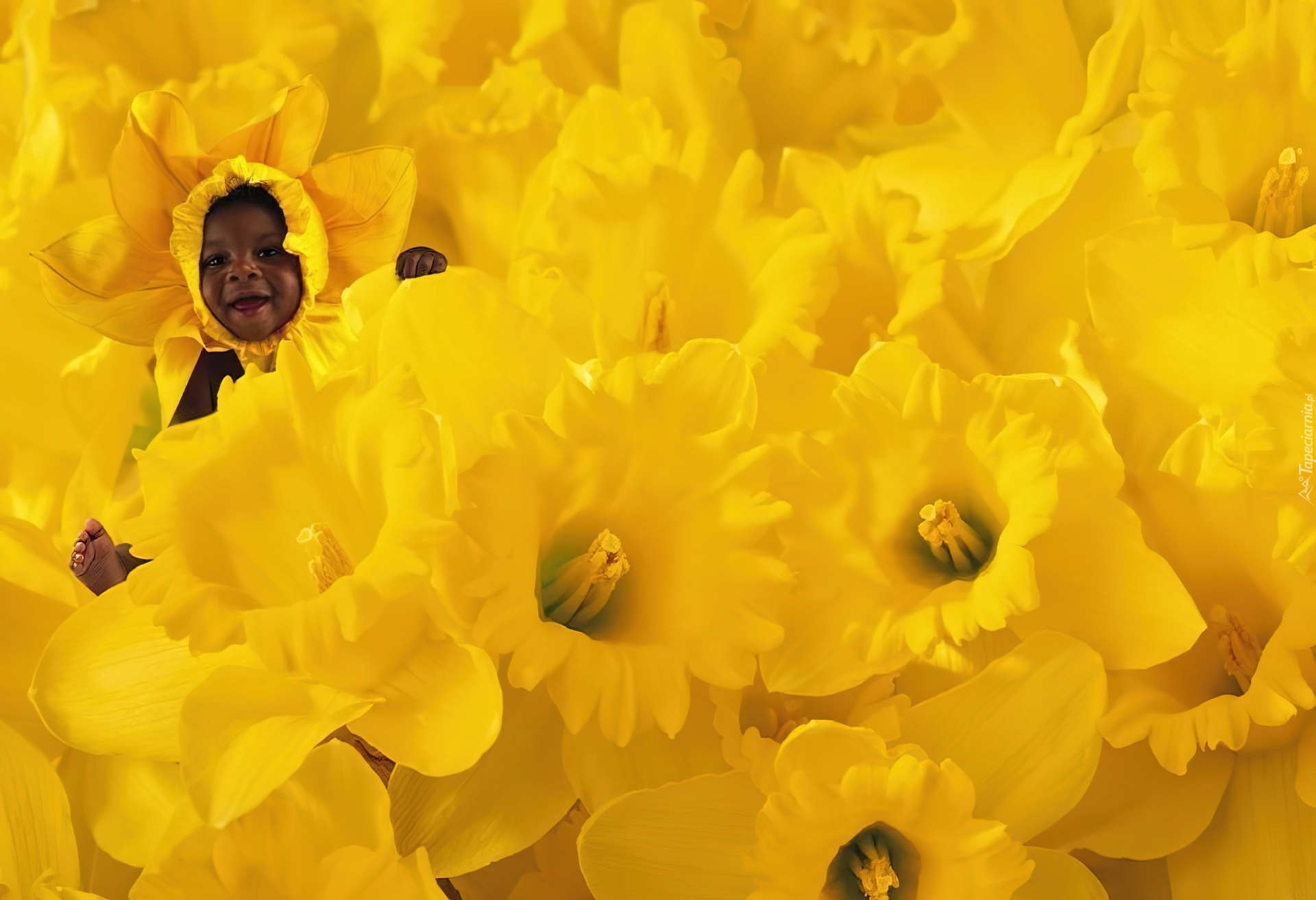 Edytor tapety: Mały, Murzynek, Żółte, Kwiaty