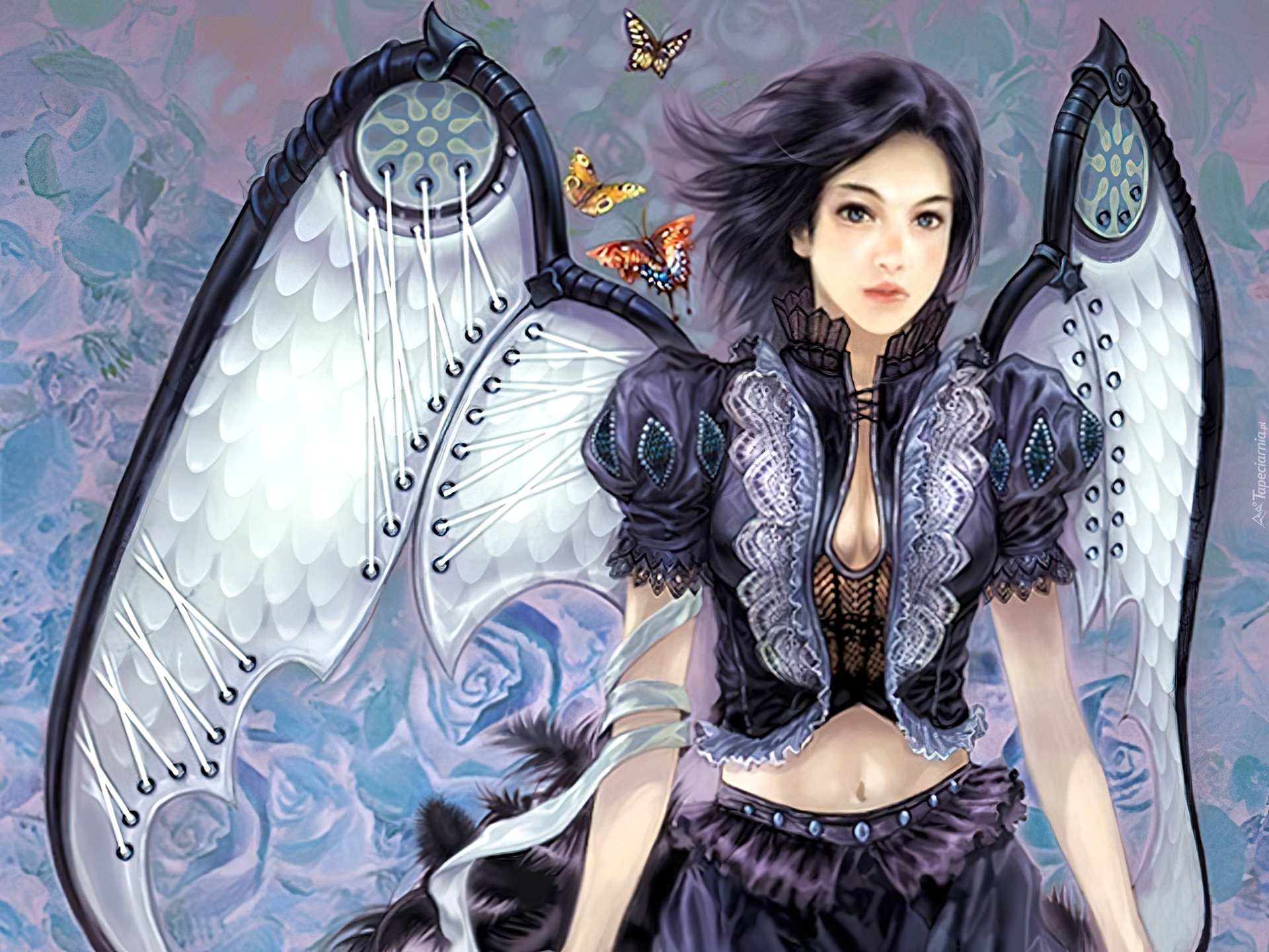 Edytor tapety: Dziewczyna, Motyl, Motyle