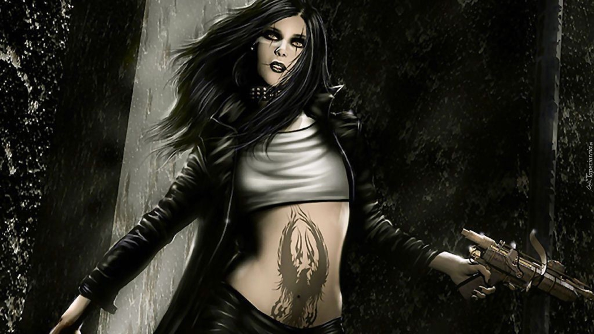 Edytor tapety: Kobieta, Tatuaż, Broń
