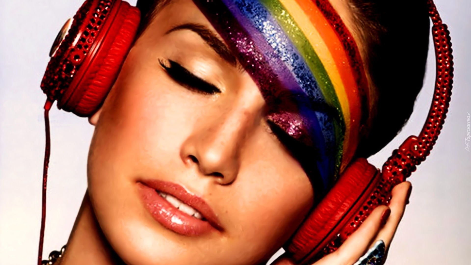 Edytor tapety: Kobieta, Słuchawki, Tęczwe, Czoło