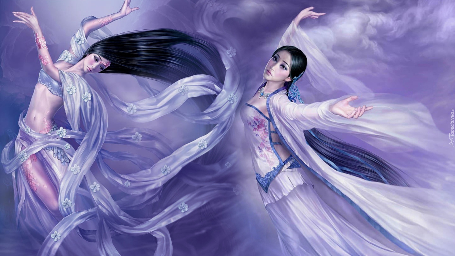Edytor tapety: Dwie, Kobiety, Szarfy, Peleryna