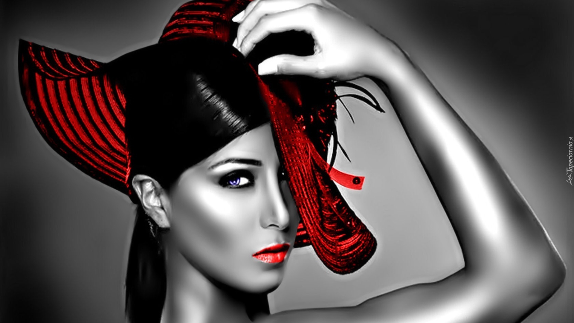 Edytor tapety: Kobieta, Czerwony, Kapelusz