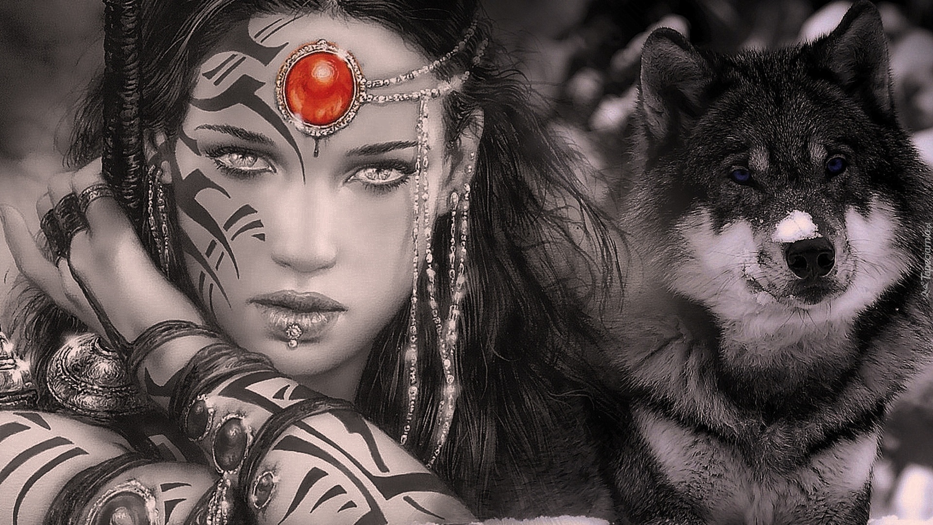 Edytor tapety: Dziewczyna, Tatuaże, Wilk
