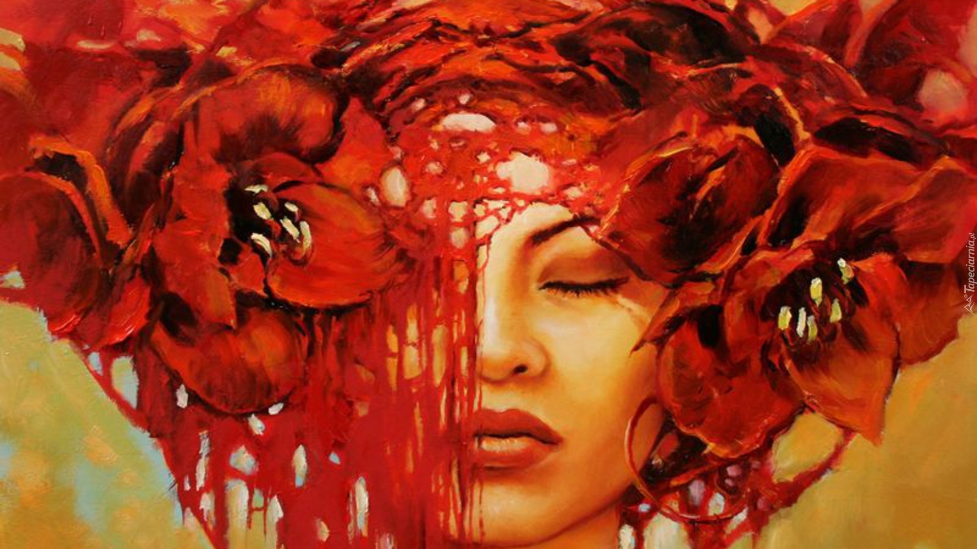 Edytor tapety: Dziewczyna, Kwiaty, Luis Royo
