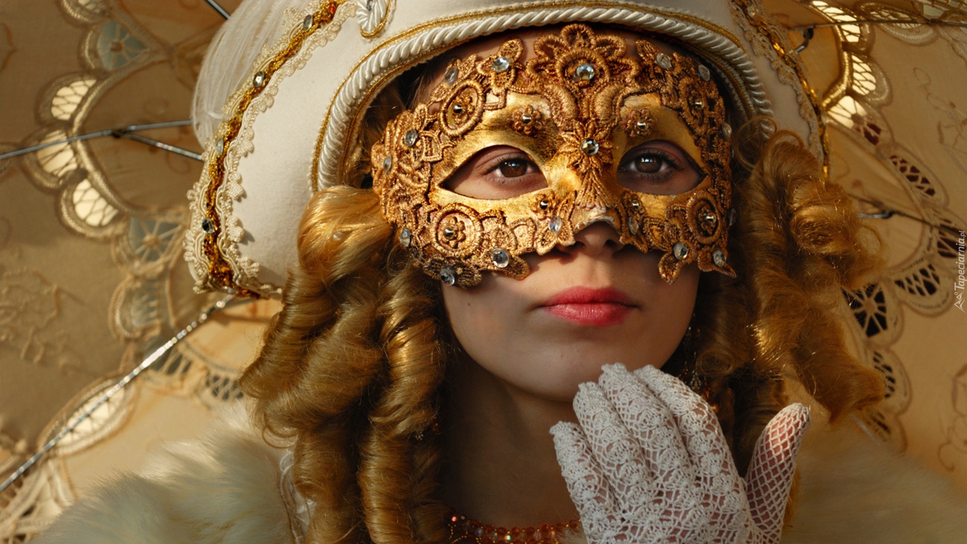 Edytor tapety: Kobieta, Maska, Kapelusz
