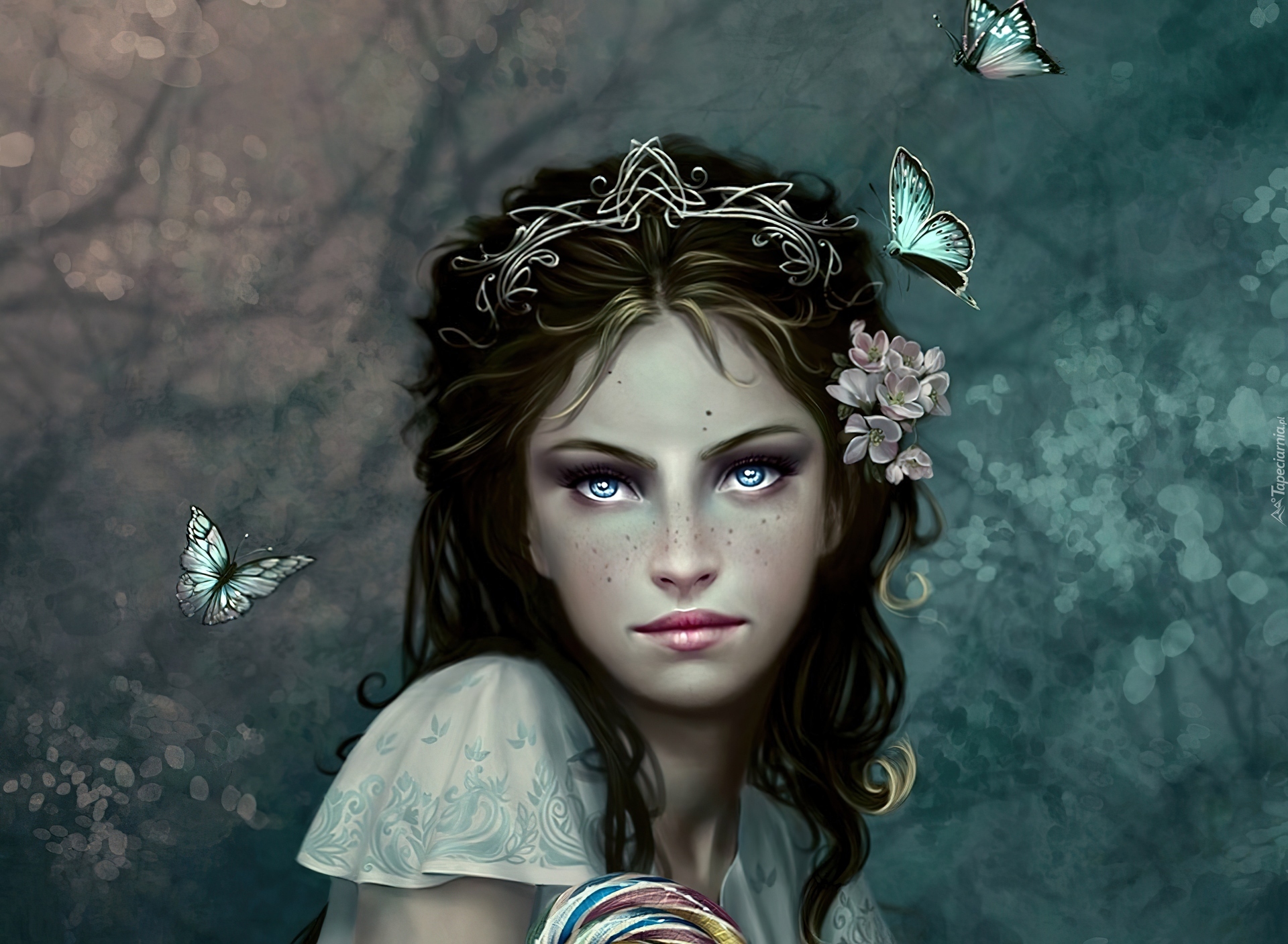 Edytor tapety: Dziewczyna, Kwiaty, Motyle