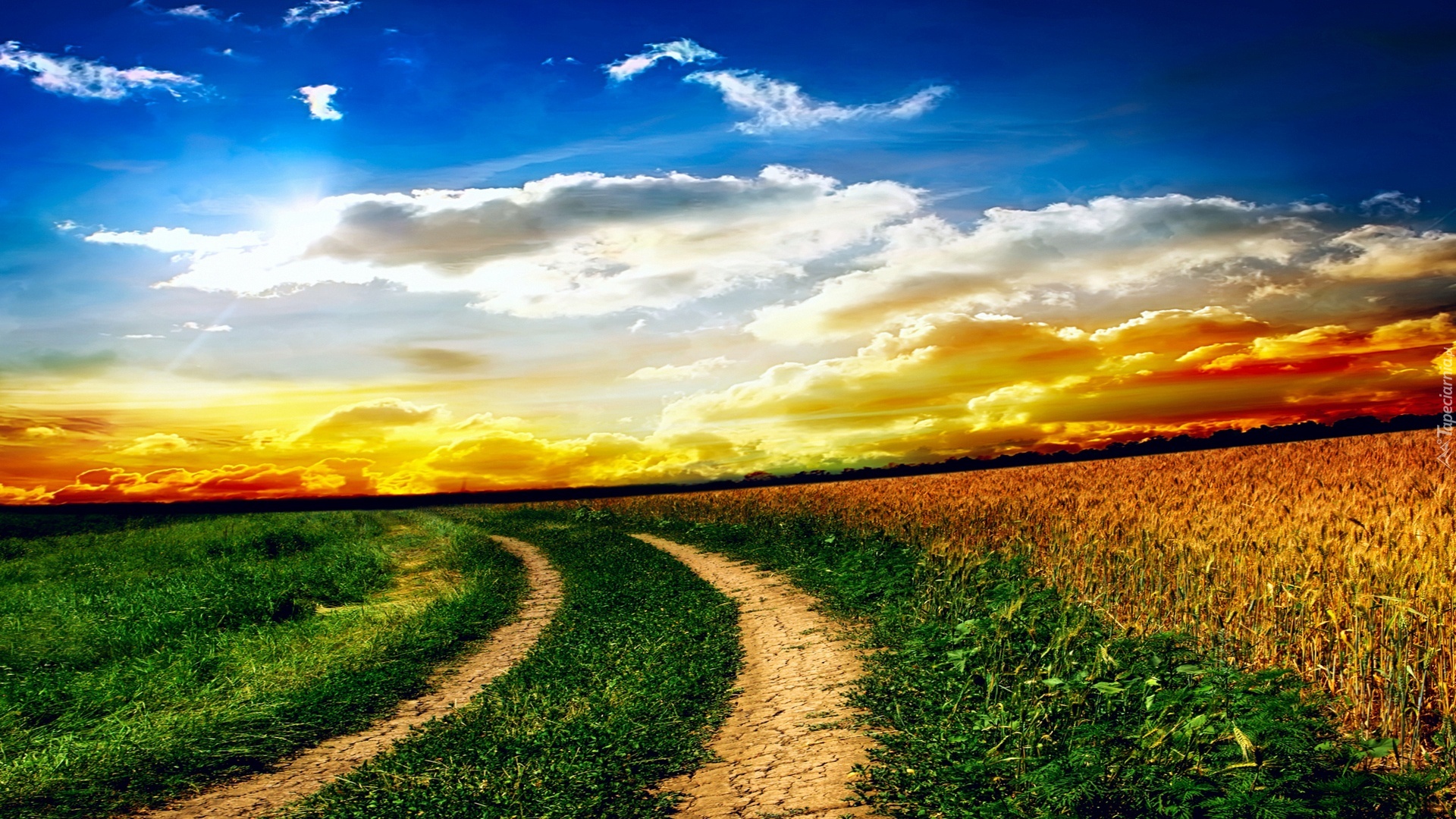 Edytor tapety: Pole, Zieleń, Droga