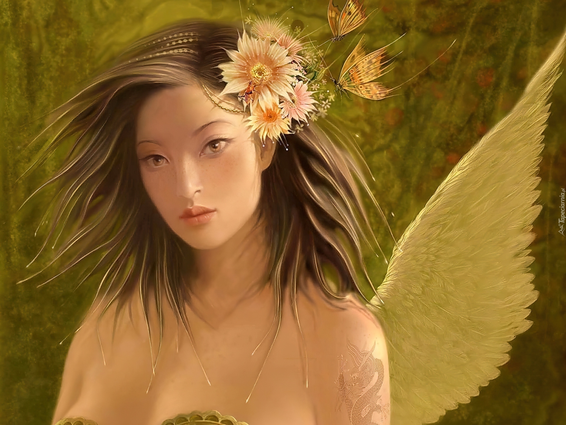 Edytor tapety: Kobieta, Anioł, Kwiatki, Motyle