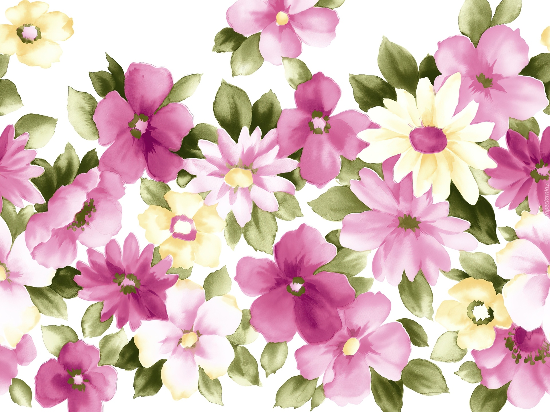 Edytor tapety: Kwiatki, Fioletowe, Różowe, Żółte, Malowane