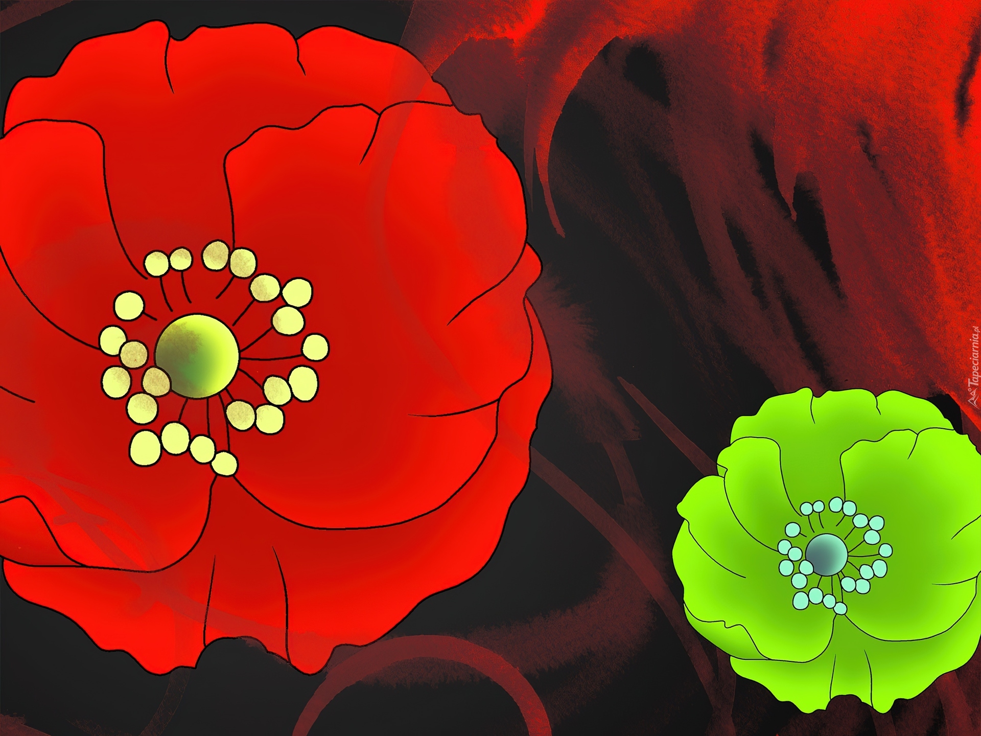 Edytor tapety: Czerwony, Zielony, Kwiat, Maki, Tekstura