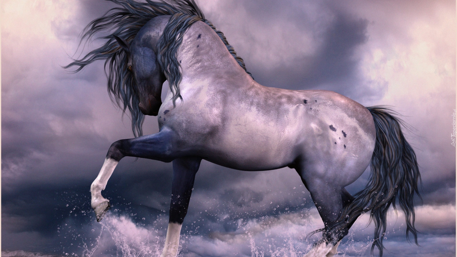 Edytor tapety: Koń, Woda, Chmury
