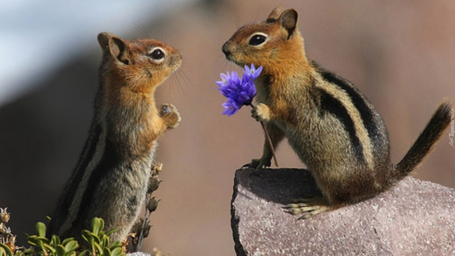 Edytor tapety: Dwie, Wiewiórki, Kwiatek, Kamień