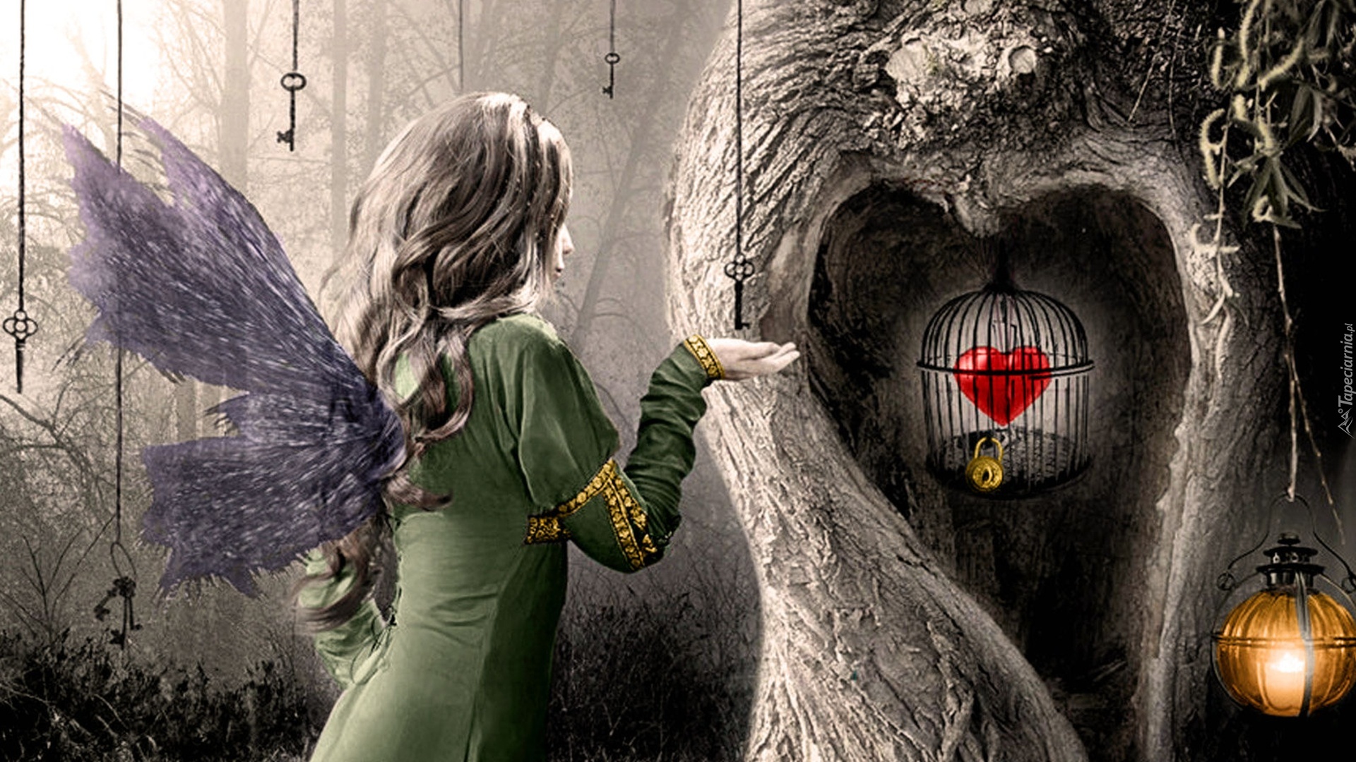 Edytor tapety: Kobieta, Motyl, Kluczyk, Klatka