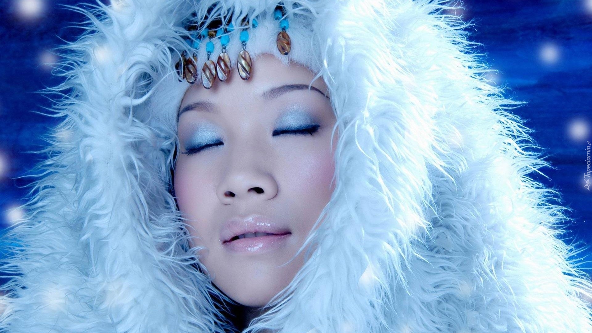 Edytor tapety: Kobieta, Makijaż, Kaptur, Futro