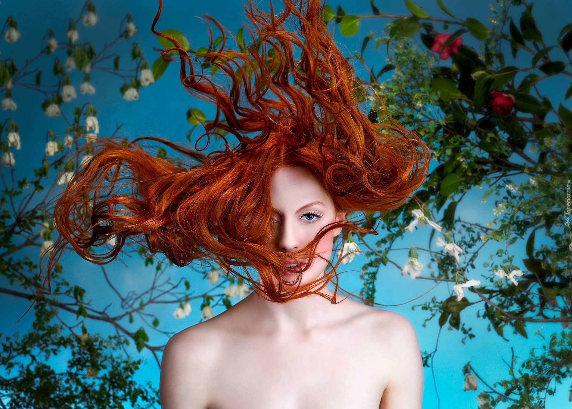 Edytor tapety: Kobieta, Rozwiane, Włosy, Drzewa
