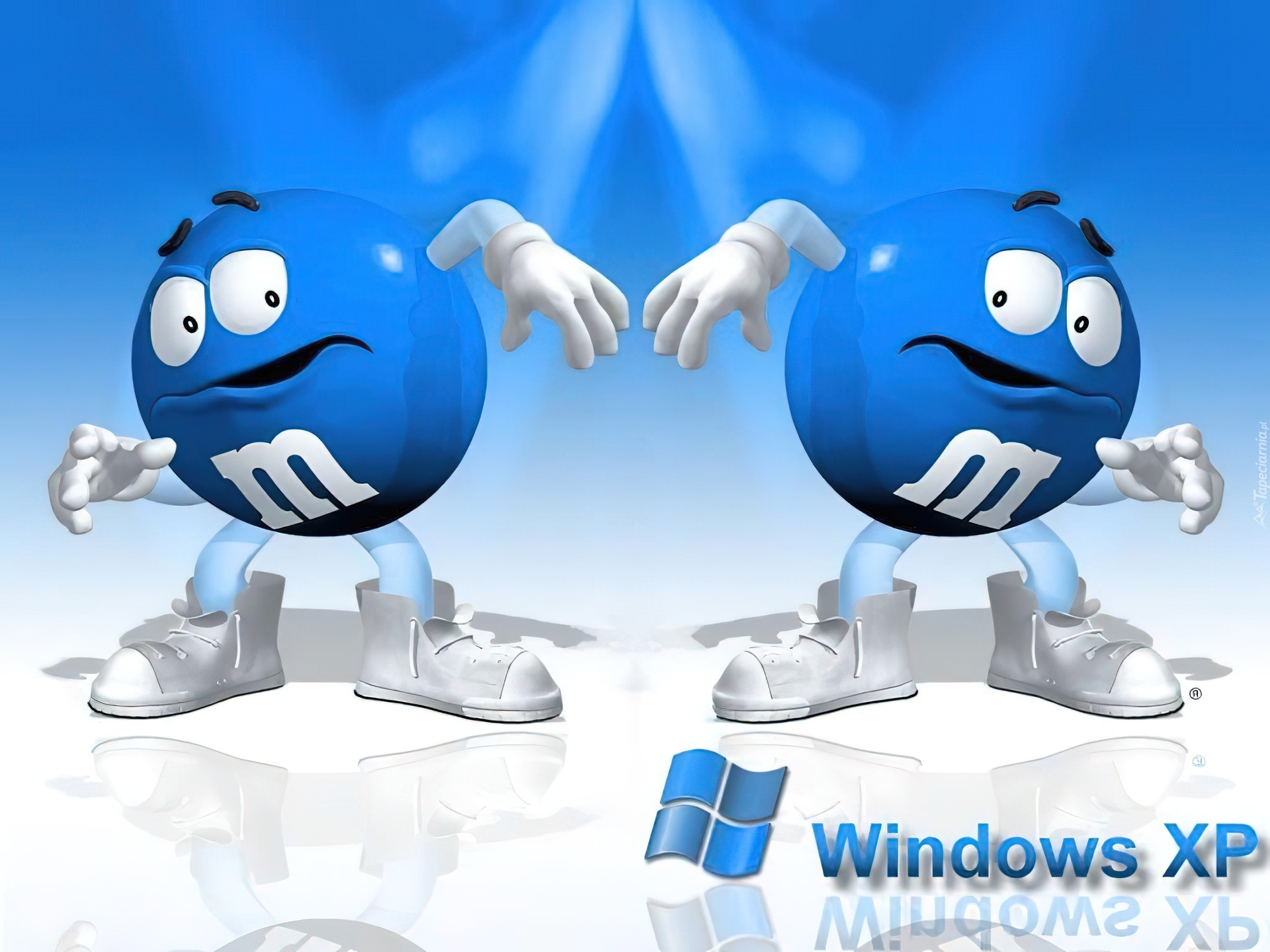 Edytor tapety: Windows, XP, Dwie, Niebieskie, M&M