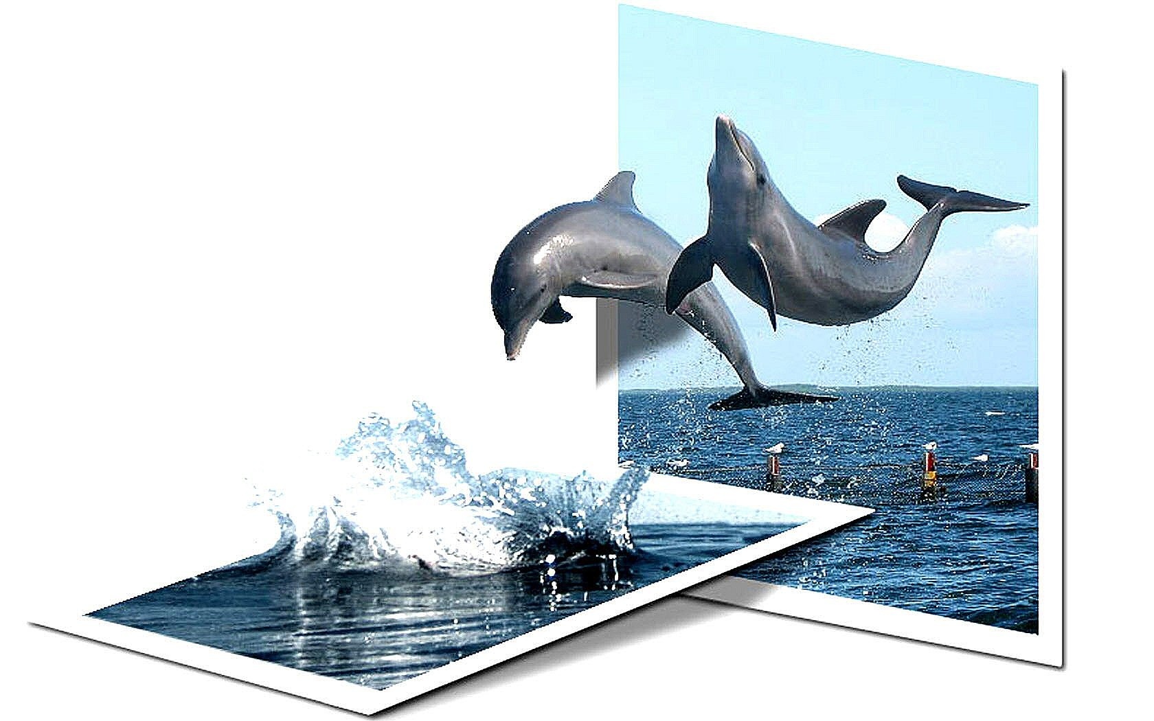 Edytor tapety: Dwa, Delfiny, Skok, Woda, 4D
