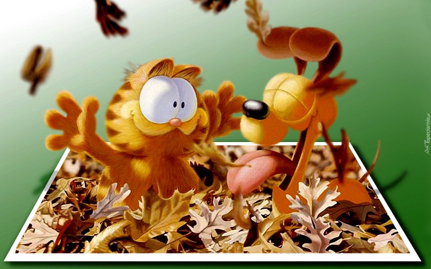 Edytor tapety: Garfield, Piesek, Liście, Radość, 4D