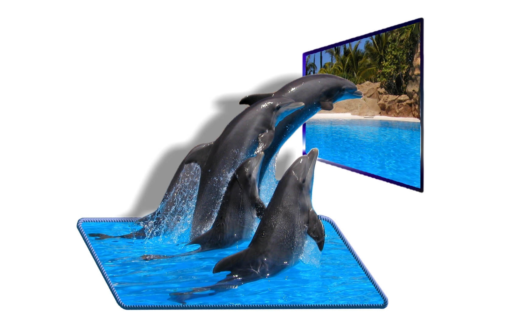 Edytor tapety: Cztery, Delfiny, Plaża, 4D