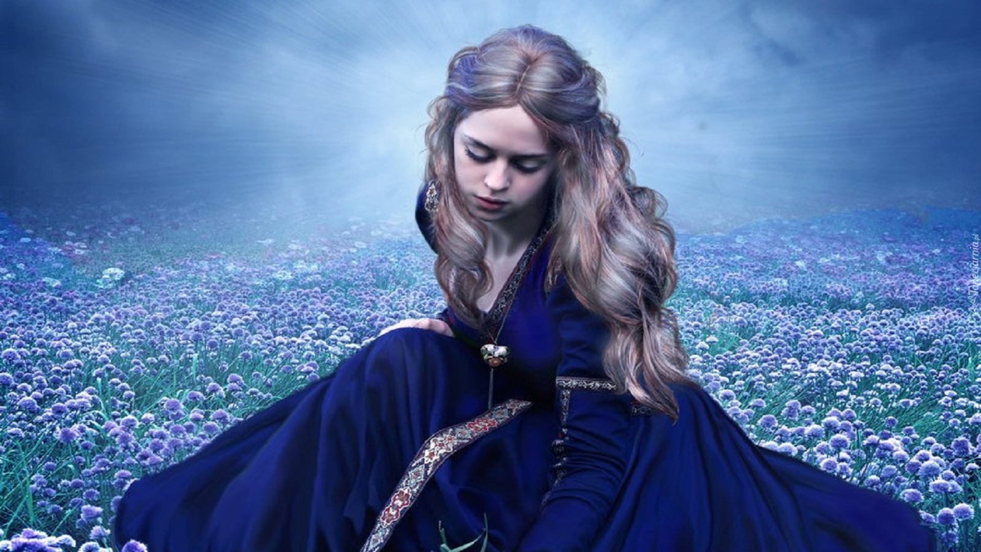 Edytor tapety: Dziewczyna, Łąka, Kwiatki