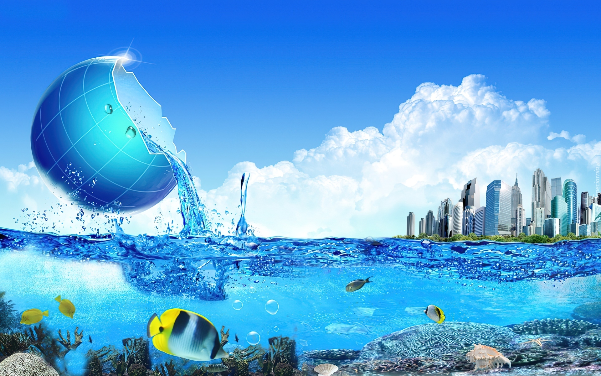 Edytor tapety: Miasto, Ryby, Woda, Ziemia
