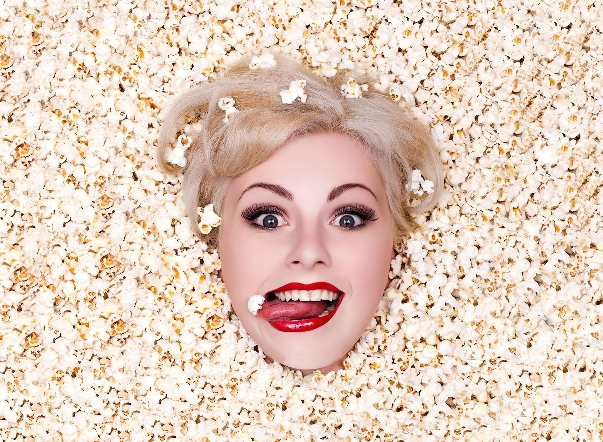 Edytor tapety: Twarz, Kobiety, Popcorn