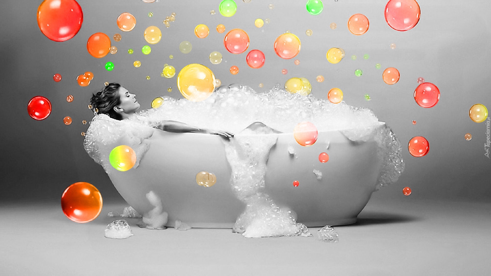 Edytor tapety: Kobieta, Wanna, Kolorowe, Bańki