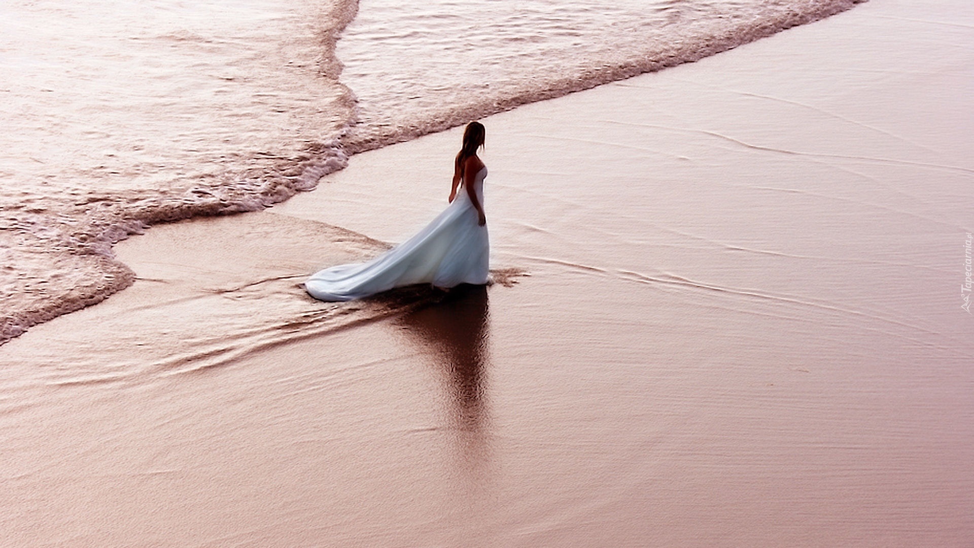Edytor tapety: Kobieta, Plaża, Biała, Suknia, Panna młoda
