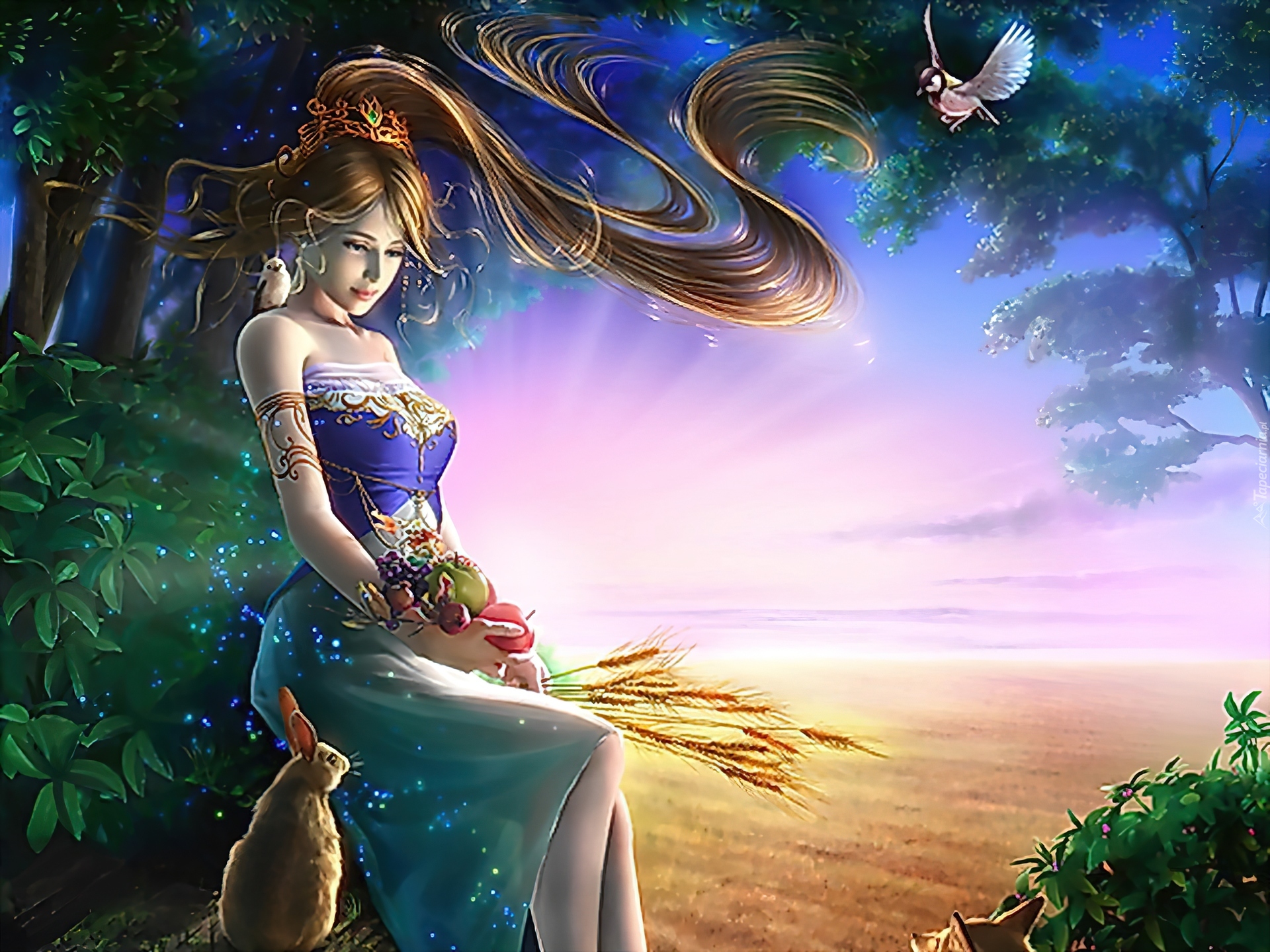 Edytor tapety: Dziewczyna, Owoce, Zwierzęta