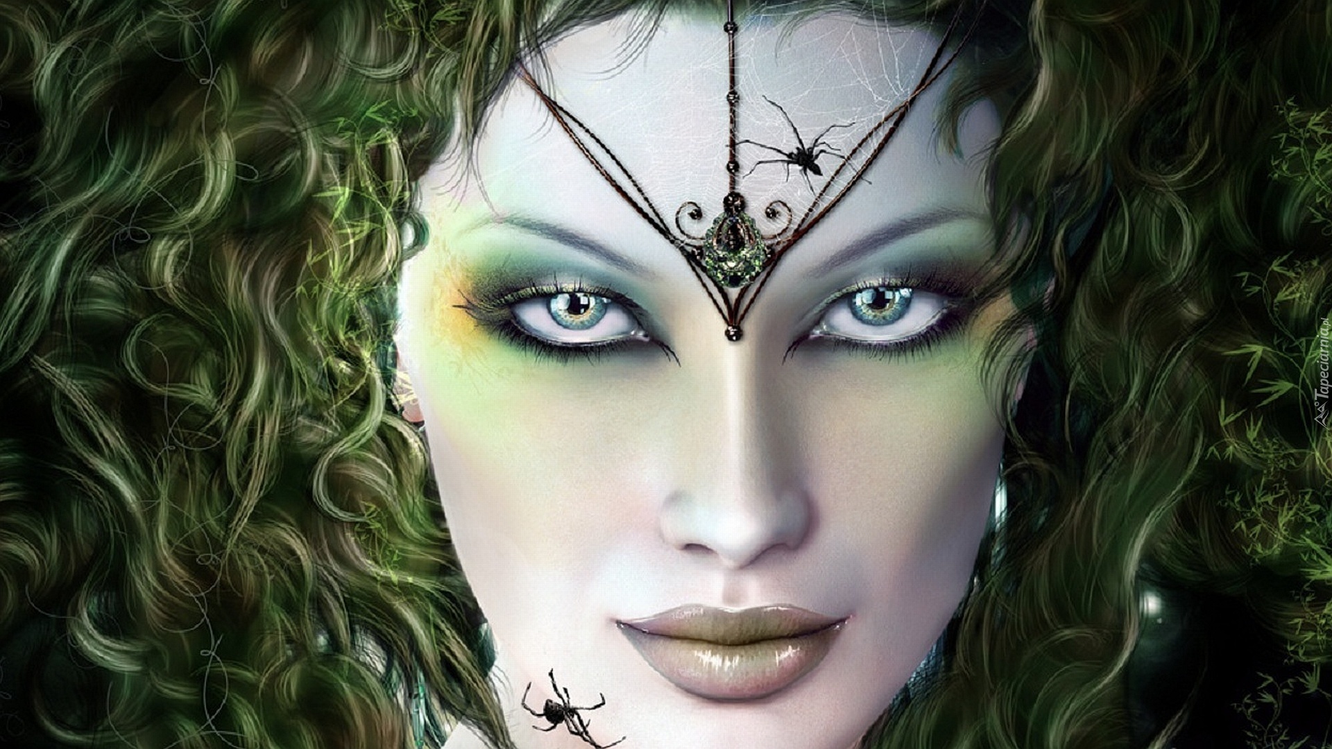 Edytor tapety: Twarz, Kobiety, Pajęczyna, Pająki