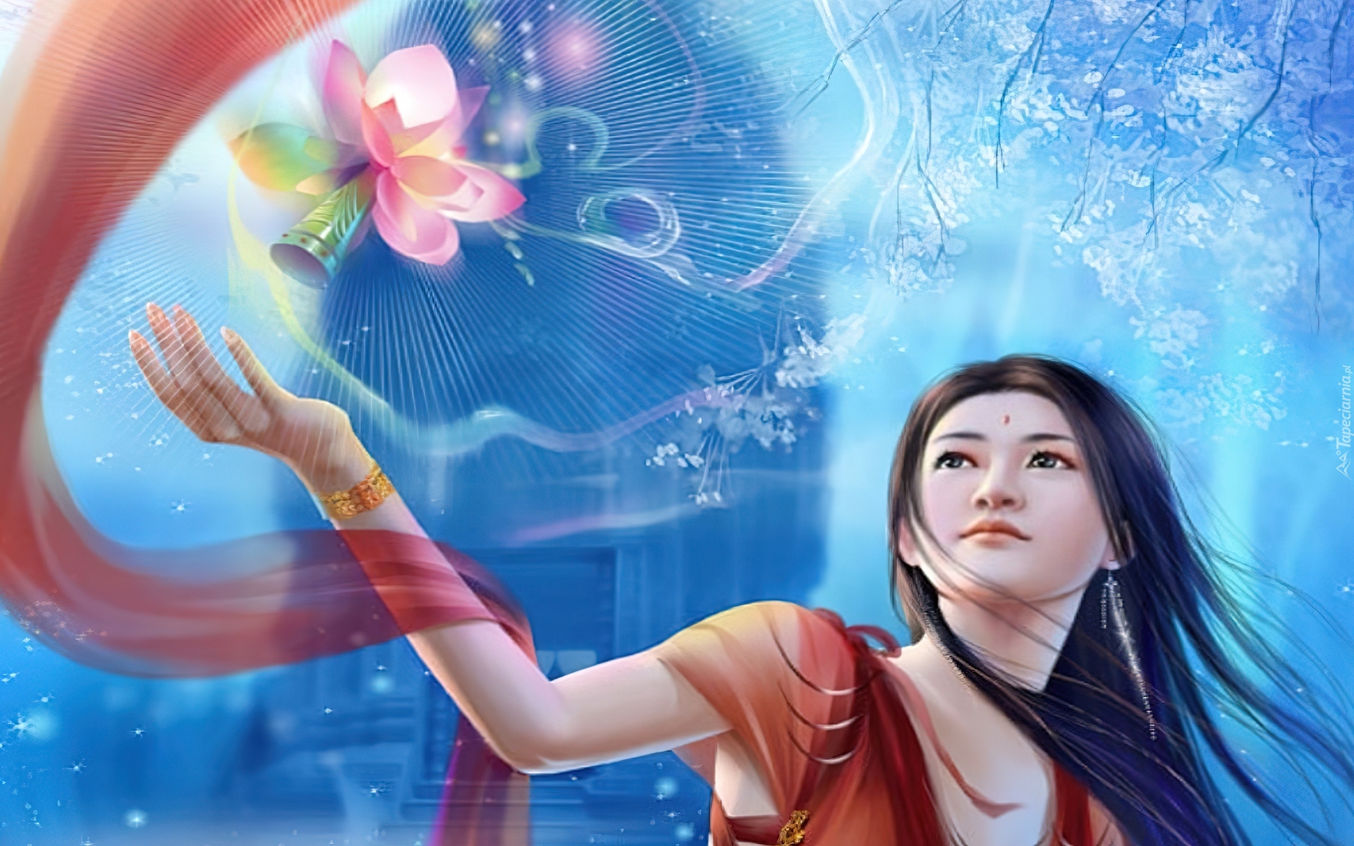Edytor tapety: Dziewczyna, Szarfa, Kwiatek