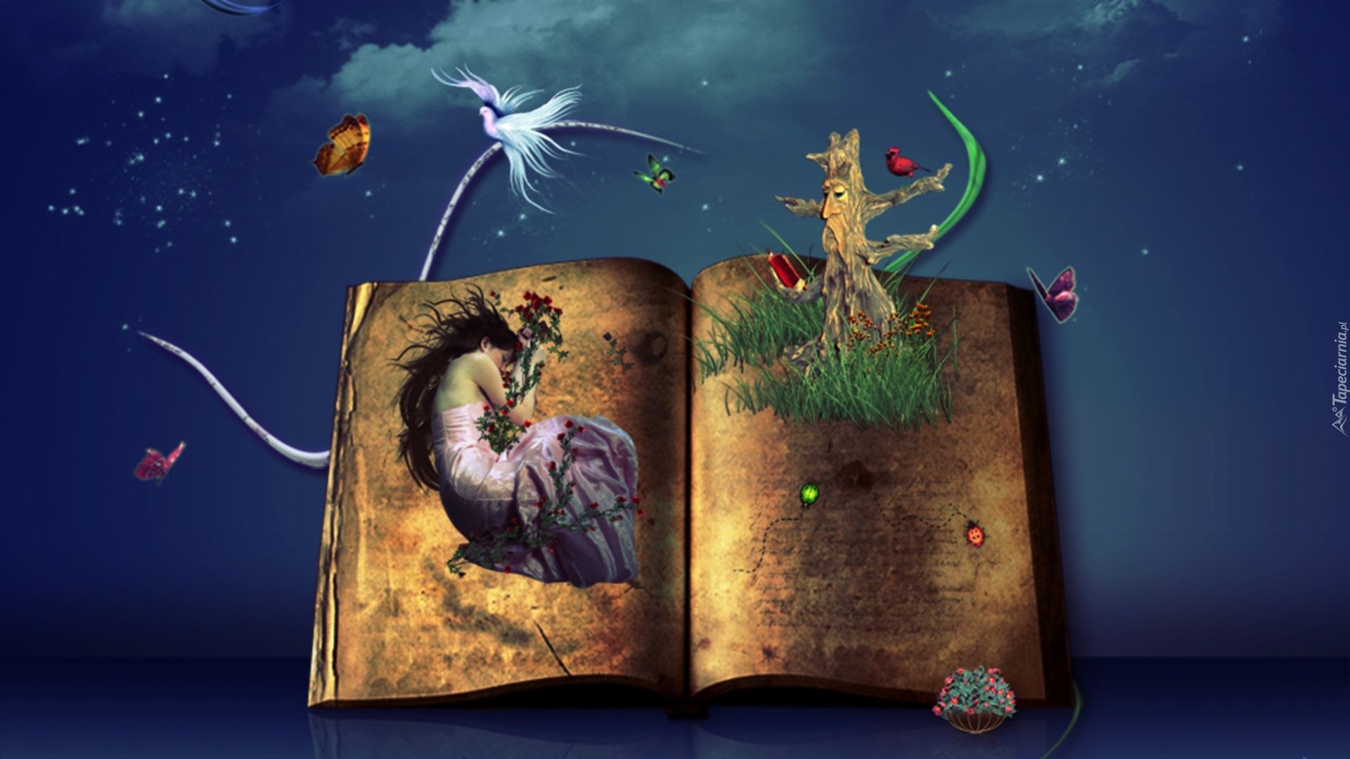 Edytor tapety: Kobieta, Książka, Drzewo