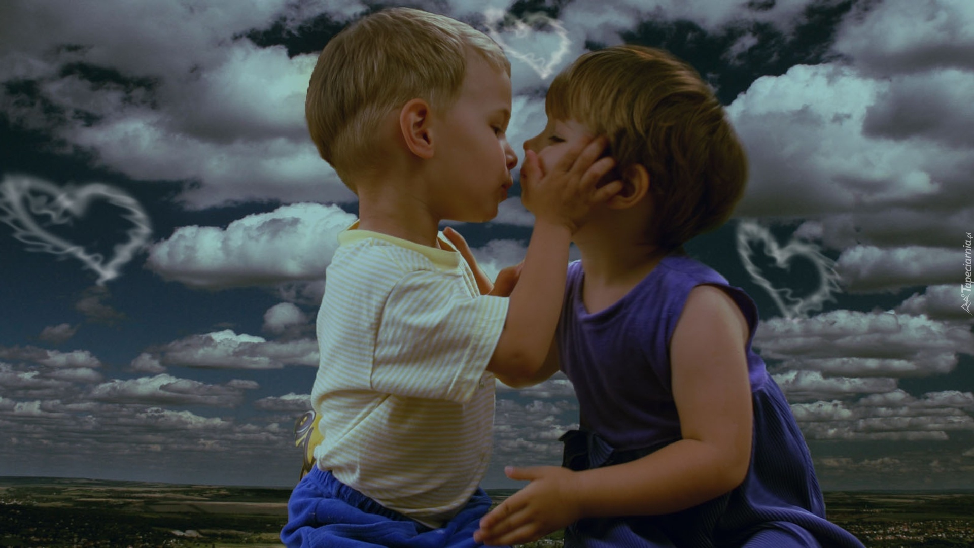 Edytor tapety: Dziewczynka, Chłopiec, Pierwszy, Pocałunek