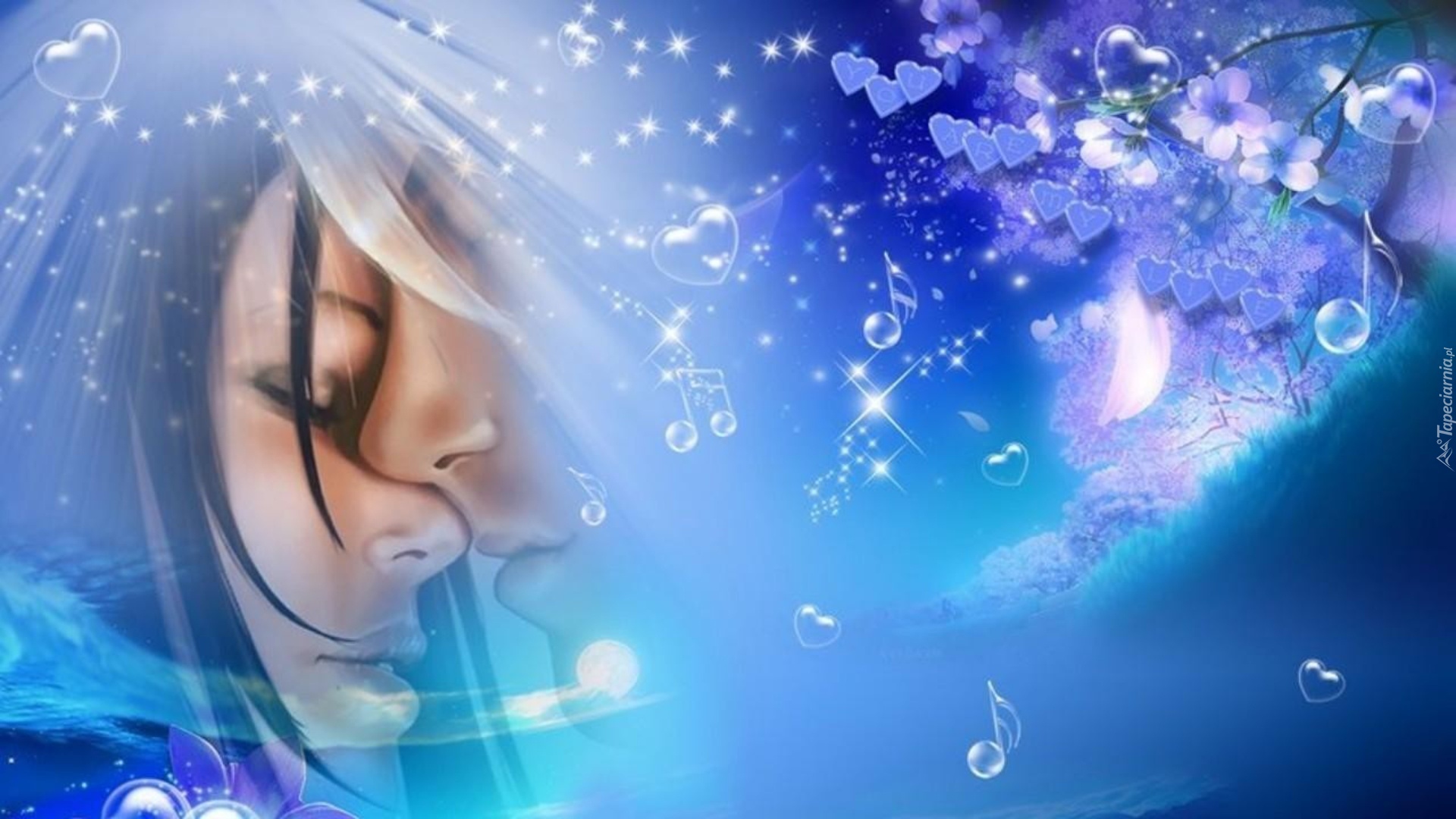 Edytor tapety: Dziewczyna, Mężczyzna, Nuty, Kwiatki