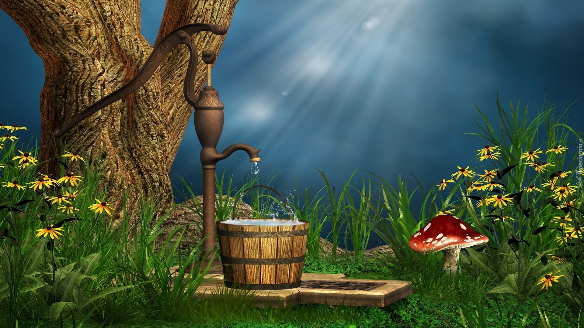 Edytor tapety: Drzewo, Studzienka, Wiadro